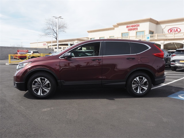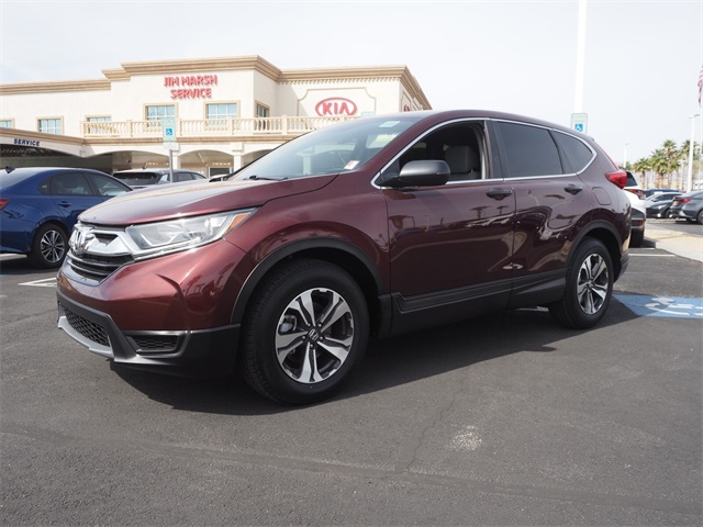 Priced below KBB Fair Purchase Price!Odometer is 22675 miles below market average!26/32 City/Highway MPGMaroon 2019 Honda CR-V LX FWD CVT 2.4L I4 DOHC 16V i-VTECIf you don't drive here, you can't save here!Price may not include recon fee. 17" Alloy Wheels, 4 Speakers, 4-Wheel Disc Brakes, 5.05 Axle Ratio, ABS brakes, Air Conditioning, Alloy wheels, AM/FM radio, Automatic temperature control, Brake assist, Bumpers: body-color, Cloth Seat Trim, Delay-off headlights, Driver door bin, Driver vanity mirror, Dual front impact airbags, Dual front side impact airbags, Electronic Stability Control, Exterior Parking Camera Rear, Four wheel independent suspension, Front anti-roll bar, Front Bucket Seats, Front Center Armrest, Front reading lights, Illuminated entry, Low tire pressure warning, Occupant sensing airbag, Outside temperature display, Overhead airbag, Overhead console, Panic alarm, Passenger door bin, Passenger vanity mirror, Power door mirrors, Power steering, Power windows, Radio data system, Radio: AM/FM Audio System w/4 Speakers, Rear anti-roll bar, Rear seat center armrest, Rear window defroster, Rear window wiper, Remote keyless entry, Speed control, Speed-sensing steering, Split folding rear seat, Spoiler, Steering wheel mounted audio controls, Tachometer, Telescoping steering wheel, Tilt steering wheel, Traction control, and Trip computer.