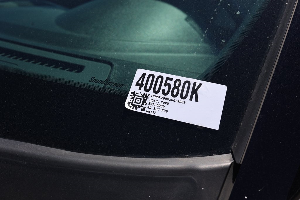 Oxford White 2018 Ford Explorer XLT FWD 6-Speed Automatic with Select-Shift 3.5L V6 Ti-VCT 2 Driver Configurable 4.2" Color LCD Displays, Auto-Dimming Rear-View Mirror, Comfort Package, Driver Connect Package, Dual-Zone Electronic Automatic Temperature Ctrl, Equipment Group 202A, Exterior Parking Camera Rear, Forward Sensing System, Fully automatic headlights, Heated Steering Wheel, Leather Heated Bucket Seats, LED Fog Lamps, Power & Heated Glass Sideview Mirrors, Power Liftgate, Radio: AM/FM Stereo w/7 Speakers, Rear Bumper Step Pad, Rear Parking Sensors, Remote Start System, Single-CD Player, SYNC 3 Communications & Entertainment System, SYNC Connect, Universal Garage Door Opener (UGDO), Voice-Activated Touchscreen Navigation System, Wheels: 18" 5-Spoke Sparkle Silver-Painted Alum, XLT Technology Feature Bundle.Recent Arrival!Awards: * 2018 KBB.com Brand Image Awards * 2018 KBB.com 10 Most Awarded Brands