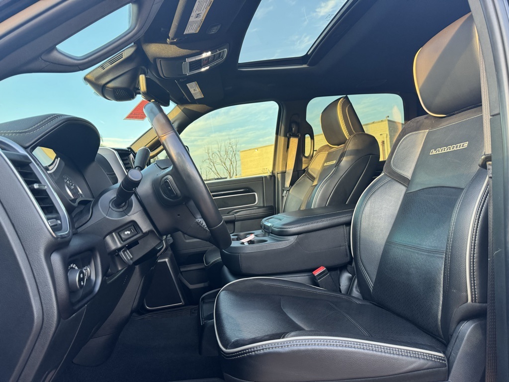 **Night Edition**, **Dual Rear Wheels**, **Laramie Level B Equipment Group**, **Max Tow Package**, **Trailer Surround–View Camera System**, **Towing Technology Group B**, **Bed Utility Group**, **50–Gallon Fuel Tank**, **Dual Alternators Rated at 440 Amps**, **Wired Tow–Mode Camera **, **Upfitter Electronic Module (VSIM)**, **Trailer Tire Pressure Monitoring System**, **Uconnect® 5 Nav with 12.0–Inch Touch Screen Display**, **Safety Group B**, **Blind–Spot with Tag Trailer & Cross–Path Detection**, **Power Sunroof**, **Power Deployable Running Boards**, **Instrument Panel Mounted Auxiliary Switches**17 Speaker harman kardon Premium Sound, Google Android Auto, Apple CarPlay, 2 Red Vinyl Flags, 2nd Row In Floor Storage Bins, 3 Reflecting Triangles, 4.10 Axle Ratio, 4G LTE Wi-Fi Hot Spot, 5th Wheel/Gooseneck Towing Prep Group, 8.4" Touchscreen Display, Adaptive Cruise Control w/Stop, Adaptive Steering System, Air Suspension Decal, Alexa Built-In, All R1 High Radios, All Radio Equipped Vehicles, Auto High Beam Headlamp Control, Auto Level Rear Air Suspension, Bed Utility Group, Black Exterior Mirrors, Black Exterior Truck Badging, Black Headlamp Bezels, Black Interior Accents, Black Ram Head Tailgate Badge, Black Tail Lamp Bezels, Black Wheel Center Hub, Body Color Door Handles, Body Color Grille Surround, Chrome Exterior Mirrors, Connected Travel & Traffic Services, Connectivity - US/Canada, CTR Stop Lamp w/Cargo View Camera, Digital Rearview Mirror, Disassociated Touchscreen Display, DOT Certified Roadside Safety Kit, DOT Fire Extinguisher, Exterior Mirrors Courtesy Lamps, Exterior Mirrors w/Heating Element, Exterior Mirrors w/Memory, Exterior Mirrors w/Supplemental Signals, Foam Bottle Insert (Door Trim Panel), For Details Visit DriveUconnect.com, For More Info, Call 800-643-2112, Full Speed Forward Collision Warning Plus, Global Telematics Box Module (TBM), Gloss Black Grille Billets/Accents, GPS Antenna Input, GPS Navigation, HD Radio, Heated Second Row Seats, Integrated Center Stack Radio, Integrated Voice Command w/Bluetooth, Lane Keep Assist, Laramie Level B Equipment Group, LED Bed Lighting, Max Tow Package, Mirror Running Lights, Mirror-Mounted Aux Reverse Lamps, MOPAR 30K Direct Mount 5th Wheel Hitch, MOPAR Deployable Bed Step, MOPAR Spray In Bedliner, Night Edition, Off-Road Information Pages, Painted Front Bumper, Painted Rear Bumper, Power Adjustable Convex Aux Mirrors, Power Adjustable Pedals w/Memory, Power Black Tow Mirrors w/Convex Spotter & Memory, Power Chrome Tow Mirrors w/Convex Spotter & Memory, Power-Folding Mirrors, Radio/Driver Seat/Mirrors/Pedals Memory, Radio: Uconnect 5 Nav w/8.4" Display, Rain Sensitive Windshield Wipers, Remote Tailgate Release, Safety Group B, Selectable Tire Fill Alert, SiriusXM Radio Service, SiriusXM Satellite Radio, SiriusXM w/360L, Spare Fuses, Surround View Camera System, Towing Technology Group B, Trailer Reverse Guidance, Trailer Tow Mirrors, Ventilated Front Seats.CARFAX One-Owner.
