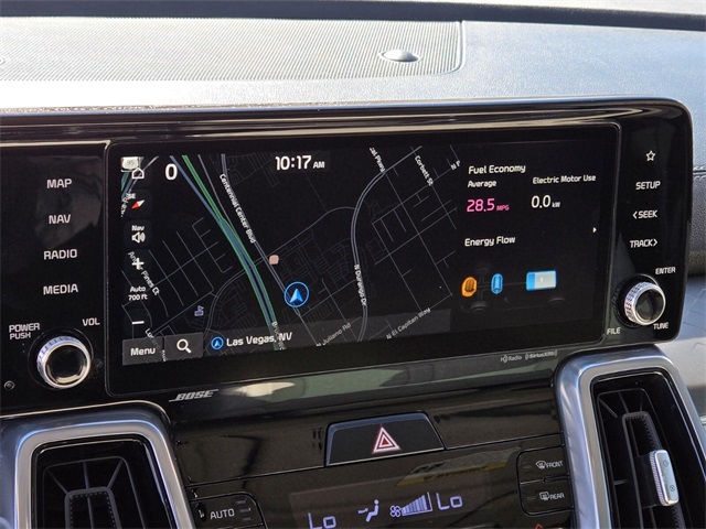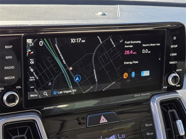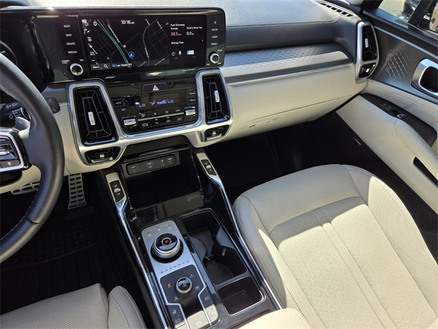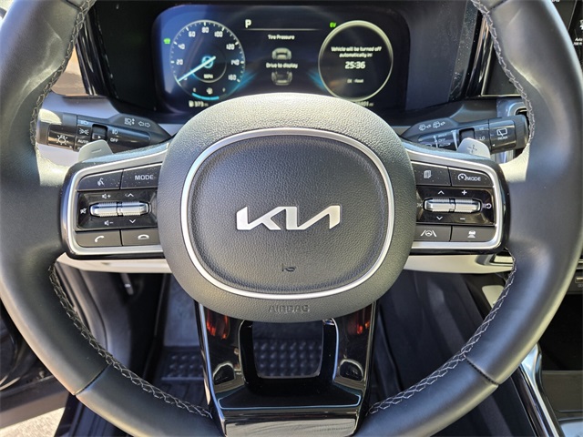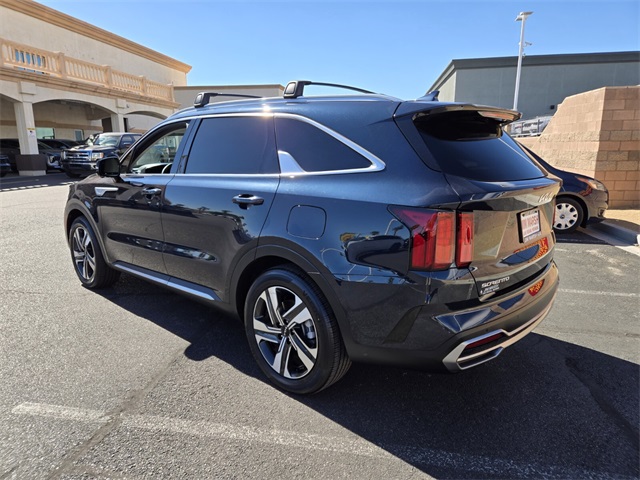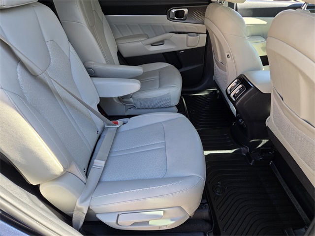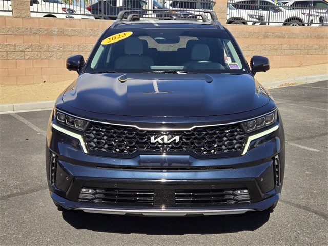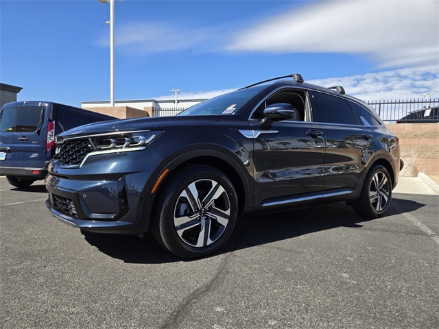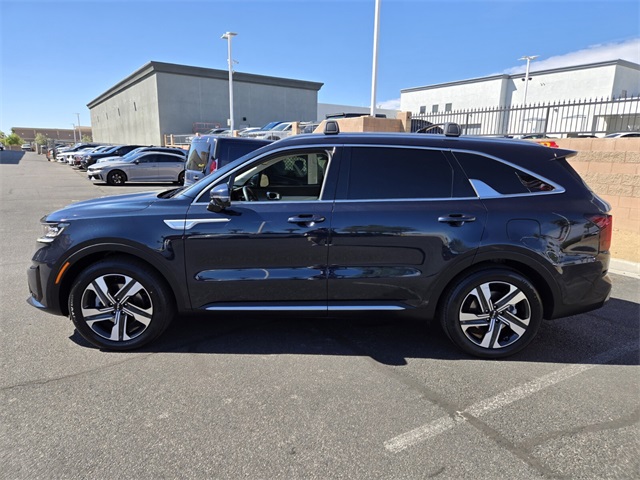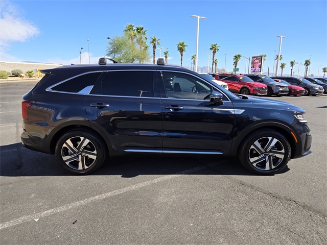 Odometer is 8128 miles below market average!36/33 City/Highway MPGGravity Blue 2023 Kia Sorento Hybrid SX Prestige AWD 6-Speed Automatic 1.6L I4 DGI Hybrid Turbocharged DOHC 16V LEV3-ULEV70 1.6L I4 DGI Hybrid Turbocharged DOHC 16V LEV3-ULEV70.If you don't drive here, you can't save here!Price may not include recon fee. Panoramic Sunroof Package (LED Interior Lighting and Power Sunroof w/Power Sunshade), 1.6L I4 DGI Hybrid Turbocharged DOHC 16V LEV3-ULEV70, 12 Speakers, 3rd row seats: split-bench, 4-Wheel Disc Brakes, ABS brakes, Air Conditioning, Alloy wheels, AM/FM radio: SiriusXM, Apple CarPlay & Android Auto, Auto High-beam Headlights, Auto-dimming Rear-View mirror, Automatic temperature control, Axle Ratio: 3.510, Brake assist, Bumpers: body-color, Cargo Net, Carpet Floor Mats, Delay-off headlights, Driver door bin, Driver vanity mirror, Dual front impact airbags, Dual front side impact airbags, Electronic Stability Control, Emergency communication system, Folding Cargo Tray, Four wheel independent suspension, Front anti-roll bar, Front Bucket Seats, Front Center Armrest, Front dual zone A/C, Front fog lights, Front reading lights, Fully automatic headlights, Garage door transmitter: HomeLink, Heated & Ventilated Front Bucket Seats, Heated door mirrors, Heated front seats, Heated rear seats, Heated steering wheel, Illuminated entry, Knee airbag, Leather steering wheel, Low tire pressure warning, Memory seat, Navigation System, Occupant sensing airbag, Outside temperature display, Overhead airbag, Overhead console, Panic alarm, Passenger door bin, Passenger vanity mirror, Perforated Genuine Leather Seat Trim, Power door mirrors, Power driver seat, Power Liftgate, Power passenger seat, Power steering, Power windows, Radio data system, Radio: AM/FM/HD Radio/SiriusXM Audio System, Rain sensing wipers, Rear air conditioning, Rear anti-roll bar, Rear reading lights, Rear window defroster, Rear window wiper, Remote keyless entry, Roof rack: rails only, Security system, Smart Key w/ Push Button and Remote Start, Speed control, Speed-sensing steering, Split folding rear seat, Spoiler, Steering wheel mounted audio controls, Tachometer, Telescoping steering wheel, Tilt steering wheel, Traction control, Trip computer, Turn signal indicator mirrors, Variably intermittent wipers, Ventilated front seats, and Wheels: 19" Machine-Finished Alloy.