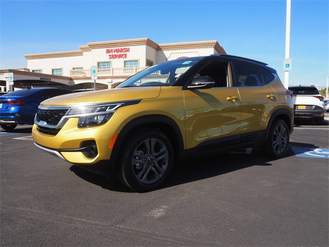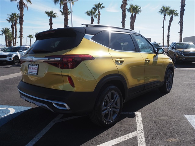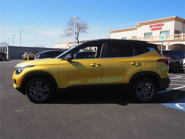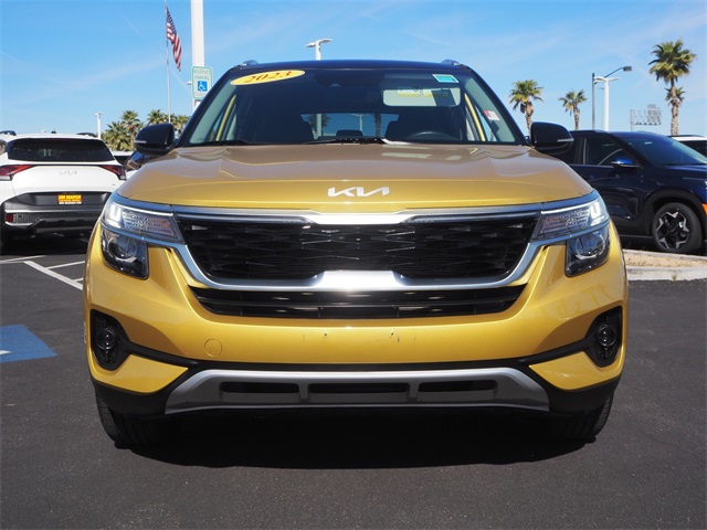 Recent Arrival!CARFAX One-Owner.Priced below KBB Fair Purchase Price!29/35 City/Highway MPGStarbright Yellow/Black Roof 2023 Kia Seltos S FWD IVT 2.0L I4 MPIIf you don't drive here, you can't save here!Price may not include recon fee. Glossy Black Door Garnish Package (Glossy Black Door Garnish), Navigation Package (Radio: AM/FM/MP3 Display Audio w/Navigation), Kia Certified Pre-Owned Certified, 4-Wheel Disc Brakes, 6 Speakers, 6.052 Axle Ratio, ABS brakes, Air Conditioning, Alloy wheels, AM/FM radio, Apple CarPlay & Android Auto, Auto High-beam Headlights, Automatic temperature control, Brake assist, Bumpers: body-color, Carpet Floor Mats, Cloth & Sofino Premium Leatherette Seat Trim, Delay-off headlights, Driver door bin, Driver vanity mirror, Dual front impact airbags, Dual front side impact airbags, Electronic Stability Control, Emergency communication system: 911 Connect, Exterior Parking Camera Rear, Front anti-roll bar, Front Bucket Seats, Front Center Armrest, Front fog lights, Front reading lights, Front wheel independent suspension, Fully automatic headlights, Heated door mirrors, Illuminated entry, Leather Shift Knob, Low tire pressure warning, Occupant sensing airbag, Outside temperature display, Overhead airbag, Overhead console, Panic alarm, Passenger door bin, Passenger vanity mirror, Power door mirrors, Power steering, Power windows, Radio: AM/FM/MP3 Display Audio, Rear seat center armrest, Rear window defroster, Rear window wiper, Remote keyless entry, Roof rack: rails only, Security system, Speed control, Speed-sensing steering, Split folding rear seat, Spoiler, Steering wheel mounted audio controls, Tachometer, Telescoping steering wheel, Tilt steering wheel, Traction control, Trip computer, Turn signal indicator mirrors, Variably intermittent wipers, and Wheels: 17" Alloy w/Dark Gray Finish.