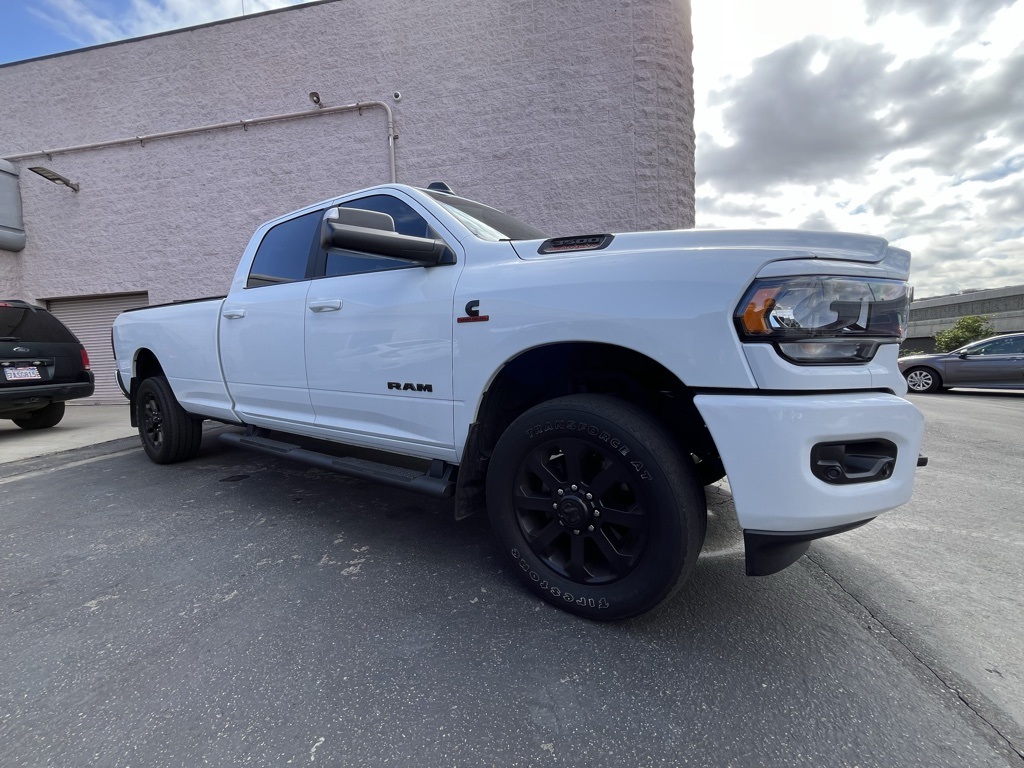 **Night Edition**, **Level A Equipment Group**, **Uconnect® 5 Nav with 12.0–Inch Touch Screen Display**, **Spray–In Bedliner by Mopar®**, **9 Alpine® Speakers with Subwoofer**, 3500 Big Horn, 4D Crew Cab, 6.7L 6-Cylinder Diesel Turbocharged OHV, 6-Speed Automatic, 4WD, Bright White Clearcoat, Apple CarPlay/Android Auto, 12" Touchscreen Display, Black Cloth, 2 Way Rear Headrest Seat, 2nd Row In Floor Storage Bins, 4 Way Front Headrests, 40/20/40 Split Bench Seat, 4G LTE Wi-Fi Hot Spot, Air Conditioning ATC w/Dual Zone Control, Alexa Built-In, All R1 High Radios, All Radio Equipped Vehicles,Auto-Dimming Rear-View Mirror, Black Exterior Truck Badging, Black Headlamp Bezels, Black Interior Accents, Black Ram Head Tailgate Badge, Black Tail Lamp Bezels, Black Wheel Center Hub, Body Color Door Handles, Body Color Grille Surround, Center Hub, Center Stack Storage Drawer, Connected Travel & Traffic Services, Connectivity - US/Canada, Disassociated Touchscreen Display, Dual Glove Boxes, Foam Bottle Insert (Door Trim Panel), Folding Flat Load Floor Storage, Footwell Courtesy Lamp, For Details Visit DriveUconnect.com, For More Info, Call 800-643-2112, Front Armrest w/Cupholders, Front Center Seat Cushion Storage, Front Fog Lamps, Front Seat Back Map Pockets, Global Telematics Box Module (TBM), Glove Box Lamp, GPS Antenna Input, GPS Navigation, Grille-Gloss Black Nostrils/Molded in Color Black, HD Radio, Integrated Voice Command w/Bluetooth, Leather Wrapped Steering Wheel, Level A Equipment Group, Locking Lower Glove Box, Manual Adjust 4-Way Front Passenger Seat, Night Edition, Off-Road Information Pages, Painted Front Bumper, Painted Rear Bumper, ParkSense Front/Rear Park Assist System, Power 2-Way Driver Lumbar Adjust, Power Adjust 8-Way Driver Seat, Power Adjustable Pedals, Premium Cloth 40/20/40 Bench Seat, Radio: Uconnect 5 Nav w/12.0" Display, Rear 60/40 Folding Seat, Rear Dome w/On/Off Switch Lamp, Selectable Tire Fill Alert, SiriusXM Radio Service, SiriusXM w/360L, Steering Wheel Mounted Audio Controls, Storage Tray, Sun Visors w/Illuminated Vanity Mirrors, Universal Garage Door Opener, Wheels: 18" x 8.0" Polished Aluminum.CARFAX One-Owner.