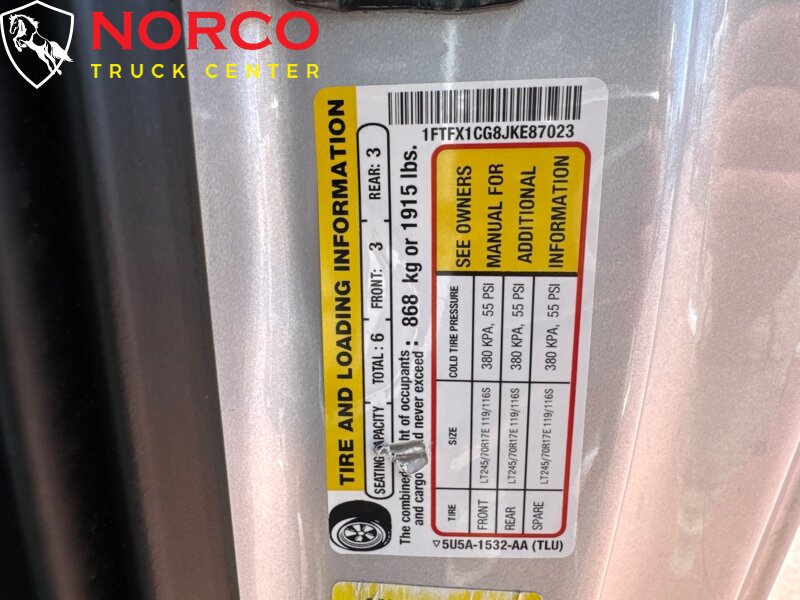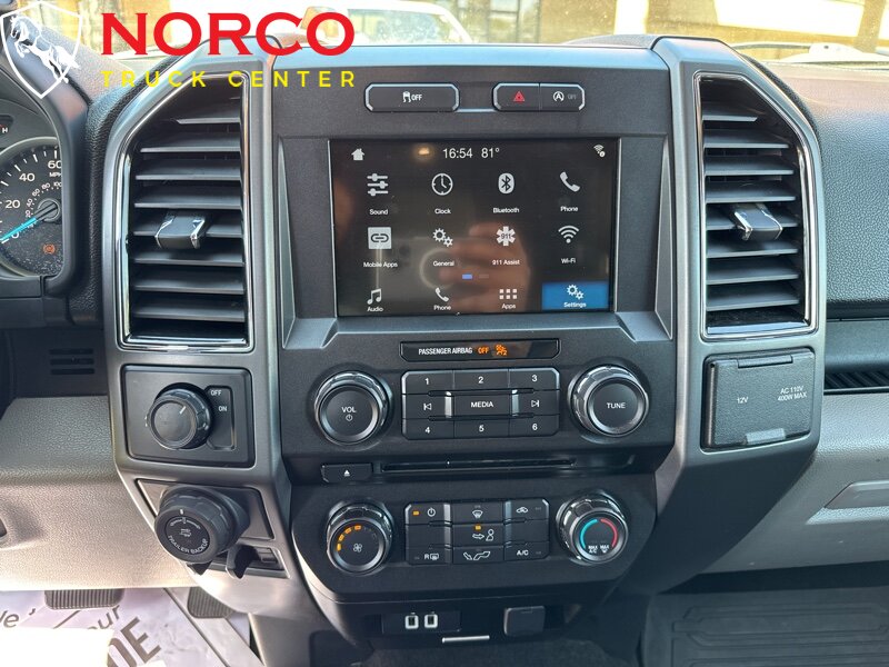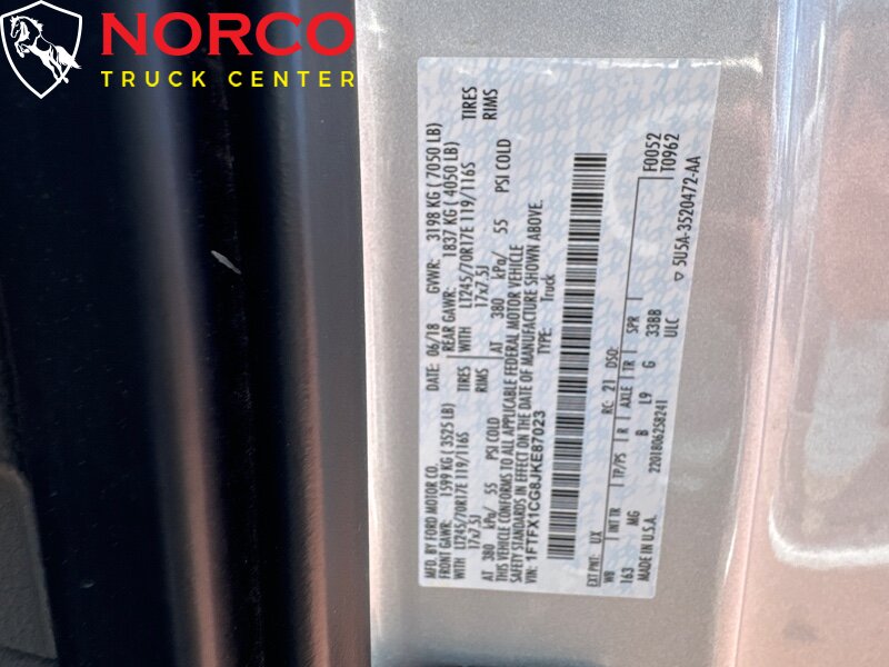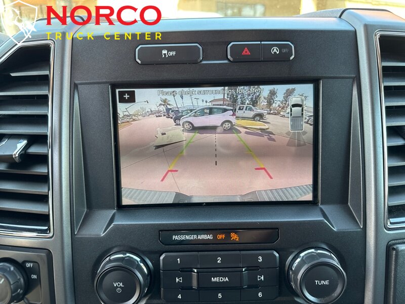 -- INSTALLED FEATURES: Front air conditioning, Front air conditioning zones: single, Airbag deactivation: occupant sensing passenger, Front airbags: dual, Side airbags: front, Side curtain airbags: front / rear, Antenna type: mast, Auxiliary audio input: Bluetooth / USB / jack, In-Dash CD: MP3 Playback / single disc, Radio: AM/FM / voice operated, Radio data system, Speed sensitive volume control, Total speakers: 6, ABS: 4-wheel, Braking assist, Electronic brakeforce distribution, Electronic parking brake, Front brake diameter: 13.8, Front brake type: ventilated disc, Front brake width: 1.34, Power brakes, Rear brake diameter: 13.2, Rear brake type: ventilated disc, Rear brake width: 0.87, Armrests: front center, Door sill trim: scuff plate, Floor mat material: carpet, Floor material: carpet, Floor mats: front / rear, Interior accents: chrome, Steering wheel trim: urethane, Assist handle: front, Capless fuel filler system, Cruise control, Cupholders: front / rear, Keypad entry, Multi-function remote: keyless entry, One-touch windows: 2, Power outlet(s): 12V front, Power steering, Power windows: lockout button, Rearview mirror: manual day/night, Steering wheel: tilt and telescopic, Steering wheel mounted controls: cruise control / phone / voice control, Storage: door pockets / front seatback / under front seats, Vanity mirrors: dual, Axle ratio: 3.55, Drive mode selector, Auto start/stop, Battery saver, Door handle color: black, Front bumper color: chrome, Grille color: black / chrome surround, Mirror color: black, Pickup bed light, Rear bumper color: chrome, Side door type: dual rear-hinged access, Tailgate: power locking / removable, Window trim: black, Connected in-car apps: app marketplace integration, Infotainment: SYNC, Infotainment screen size: 4.2 in., Clock, Compass, Digital odometer, External temperature display, Gauge: oil pressure / tachometer / transmission temperature, Instrument cluster screen size: 4.2 in., Multi-function display, Warnings and reminders: low fuel level / low oil level / maintenance due, Daytime running lights, Exterior entry lights: approach lamps, Front fog lights, Headlights: auto delay off / auto on/off / halogen / wiper activated, Side mirror adjustments: manual folding / power, Camera system: rearview, Child safety door locks, Child seat anchors: LATCH system, Crumple zones: front, Impact sensor: alert system / post-collision safety system, Programmable safety key, Rearview monitor: in dash, Emergency locking retractors: front, Front seatbelts: 3-point, Rear seatbelts: 3-point, Seatbelt force limiters: front, Seatbelt pretensioners: front, Seatbelt warning sensor: front, Driver seat manual adjustments: lumbar / reclining / 4, Front headrests: adjustable / 3, Front seat type: 40-20-40 split bench, Passenger seat manual adjustments: lumbar / reclining / 4, Rear headrests: adjustable / 3, Rear seat folding: folds up / split, Rear seat type: 60-40 split bench, Upholstery: cloth, Anti-theft system: alarm / perimeter alarm / vehicle immobilizer, Power door locks: auto-locking, Hill holder control, Roll stability control, Stability control, Traction control, Trailer stability control, Steering ratio: 17, Front shock type: gas, Front spring type: coil, Front stabilizer bar, Front struts, Front suspension classification: independent, Front suspension type: double wishbone, Rear shock type: gas, Rear spring type: leaf, Rear suspension classification: solid live axle, Rear suspension type: multi-leaf, Electronic messaging assistance: voice operated / with read function, Hands-free phone call integration: voice operated, Wireless data link: Bluetooth, Spare tire mount location: underbody, Spare tire size: full-size, Spare wheel type: steel, Tire Pressure Monitoring System, Tire type: all season, Wheel locks: spare only, Wheels: aluminum alloy, Pickup bed cargo management: tie-down anchors, Tow/Haul mode, Trailer wiring: 4-pin, Front wipers: intermittent, Laminated glass: acoustic windshield, Power windows, Rear privacy glass, Solar-tinted glass: rear