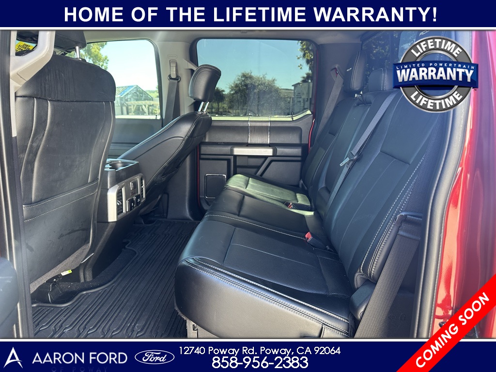Priced below KBB Fair Purchase Price!110V/400W Outlet, 6" Ebony Black Angular Running Boards, Adaptive Steering, Ambient Lighting - Fixed Color, Black Out Surrounds LED Only Headlamps, Body-Color Front & Rear Bumpers, Easy Entry®/Exit Memory Driver's Seat Feature, Ebony Black Painted Front Grille Bars, Ebony Black Painted Mirror Caps, Electronic-Locking w/3.55 Axle Ratio, Engine Block Heater, Flow-Through Console, Front Leather Seating Surfaces 40/Console/40, Fully automatic headlights, GVWR: 10,000 lb Payload Package, Heated Steering Wheel, High Capacity Trailer Tow Package, Intelligent Access w/Push-Button Start, Lariat Sport Appearance Package, Lariat Ultimate Package, LED Box Lighting, Memory Power-Adjustable Pedals, Order Code 608A, Power Heated/Ventilated Driver Seat w/Memory, Power Heated/Ventilated Passenger Seat, Power Telescoping/Tilt Steering Wheel/Column, PowerScope Trailer Tow Mirrors w/Memory, Radio: B&O System by Bang & Olufsen, Rear Parking Sensors, Rear Wheel Well Liners (Pre-Installed), Remote Start System, Remote Tailgate Release, SiriusXM Radio, SYNC 3 Communications & Entertainment System, Tailgate Step & Handle, Tough Bed Spray-In Bedliner, Twin Panel Power Moonroof, Upfitter Switches (6), Voice-Activated Touchscreen Navigation System, Wheels: 20" High-Gloss Black Premium Painted Alum, Windshield Wiper De-Icer.Odometer is 43389 miles below market average!CARFAX One-Owner.To see more quality vehicles like this one right just click on AaronFordofPoway.com or dial (858) 748-1400.
