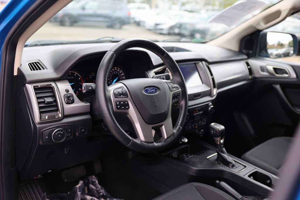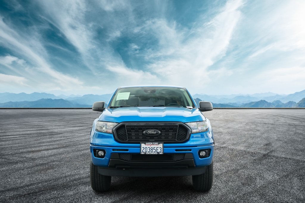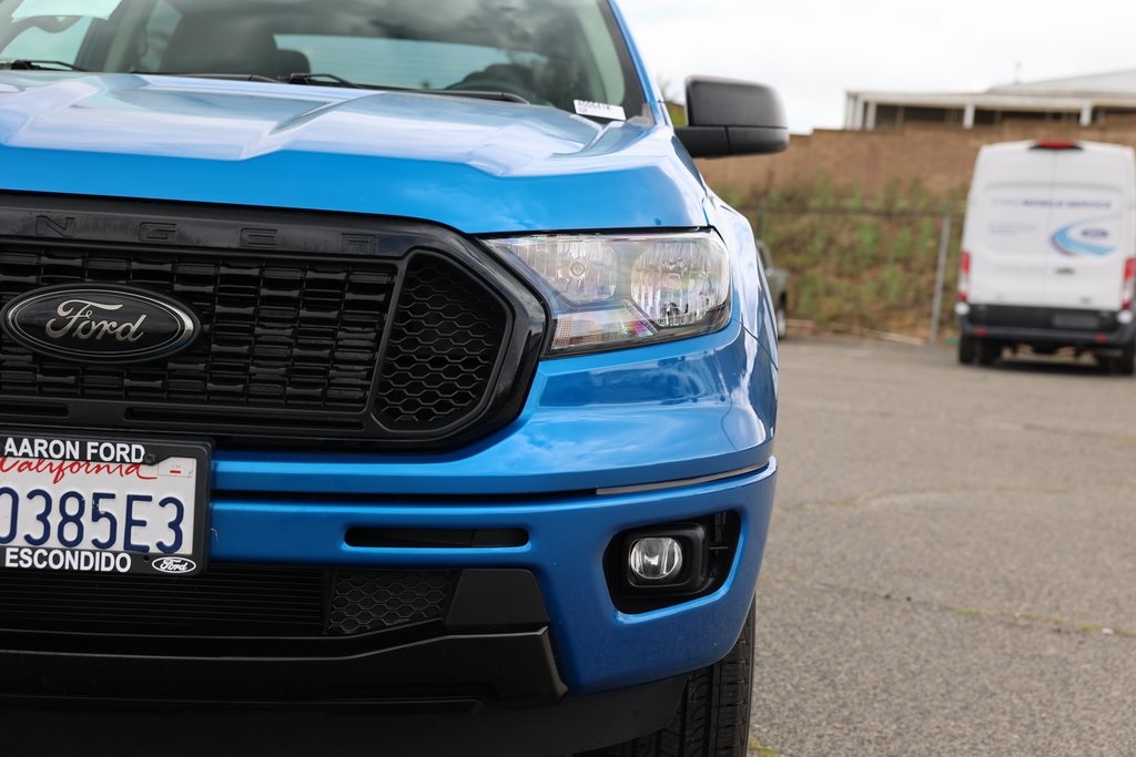 Velocity Blue Metallic 2021 Ford Ranger XLT RWD 10-Speed Automatic EcoBoost 2.3L I4 GTDi DOHC Turbocharged VCT 110V AC Power Outlet, 5" Rectangular Black Running Boards, Air Conditioning, Auto-Dimming Rear-View Mirror, Black Appearance Package, Black Grille w/Black Surround, Black Grille w/Magnetic Surround, Black Wheel-Lip Molding, Body-Color Front & Rear Bumpers, Class IV Trailer Hitch Receiver, Equipment Group 301A Mid, Exterior Parking Camera Rear, Front Bucket Seats, Fully automatic headlights, Leather-Wrapped Shifter, Leather-Wrapped Steering Wheel, Magnetic Front & Rear Bumper, Reverse Sensing System, Sport Appearance Package, Sport Box Decal, SYNC 3/Apple CarPlay/Android Auto, Tough Bed Spray-In Bedliner, Trailer Tow Package, Wheels: 18" Black Painted Aluminum.Recent Arrival! 21/26 City/Highway MPG