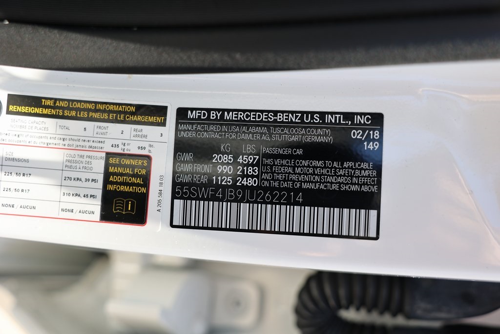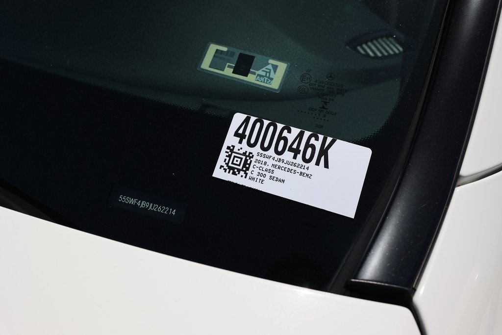 Polar White 2018 Mercedes-Benz C-Class C 300 RWD 9-Speed Automatic 2.0L I4 Turbocharged 4-way Power Driver's Lumbar Support, Air Conditioning, Exterior Parking Camera Rear, Head restraints memory, MB-Tex Upholstery, Memory seat, Power Front Seats w/Driver Memory, Power moonroof, Premium audio system: COMAND®, Wheels: 17" Split Y-Spoke.Odometer is 6852 miles below market average! 24/33 City/Highway MPG