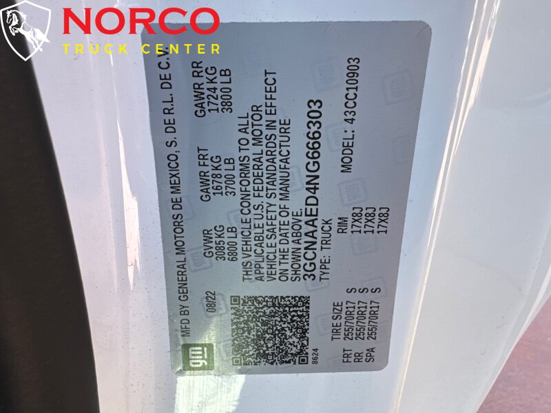 -- INSTALLED FEATURES: Air filtration, Front air conditioning, Front air conditioning zones: single, Airbag deactivation: occupant sensing passenger, Front airbags: dual, Side airbags: front, Side curtain airbags: front, Antenna type: mast, Auxiliary audio input: Bluetooth / USB / iPod/iPhone, Radio: AM/FM / touch screen display, Radio data system, Speed sensitive volume control, Total speakers: 2, ABS: 4-wheel, Braking assist, Electronic brakeforce distribution, Electronic parking brake: auto off, Front brake diameter: 13.0, Front brake type: ventilated disc, Front brake width: 1.18, Power brakes, Rear brake diameter: 13.6, Rear brake type: ventilated disc, Rear brake width: 0.79, Armrests: front center, Floor material: rubber/vinyl, Steering wheel trim: urethane, Assist handle: front, Capless fuel filler system, Cupholders: front, Multi-function remote: keyless entry / panic alarm, One-touch windows: 2, Power outlet(s): 12V front / USB front, Power steering, Push-button start, Reading lights: front, Rearview mirror: manual day/night, Steering wheel: tilt, Storage: door pockets / in seat cushion, Sun visors, Axle ratio: 3.42, Auto start/stop, Battery: heavy duty / maintenance-free, Battery rating: 730 CCA, Battery saver, Active grille shutters, Bumper detail: rear step, Door handle color: black, Front bumper color: black, Grille color: black, Mirror color: black, Pickup bed light, Rear bumper color: black, Tailgate: removable, Window trim: black, Connected in-car apps: Google POIs / Google search, Infotainment: Chevrolet Infotainment System, Infotainment screen size: 7 in., Smartphone integration: Android Auto / Apple CarPlay, Clock, Digital odometer, External temperature display, Fuel economy display: MPG / range, Gauge: oil pressure / tachometer, Instrument cluster screen size: 3.5 in., Multi-function display, Powertrain hour meter, Trip odometer, Warnings and reminders: coolant temperature warning / lamp failure / low battery / low fuel level / low oil pressure / maintenance due, Daytime running lights, Headlights: auto delay off / auto high beam dimmer / auto on/off / halogen / wiper activated, Side mirror adjustments: manual folding / power, Side mirrors: heated, Automatic emergency braking: front / front pedestrian, Camera system: rearview, Child seat anchors, Lane deviation sensors, Lane keeping assist, Pre-collision warning system: audible warning / pedestrian detection / visual warning, Programmable safety key, Rearview monitor: in dash, Emergency locking retractors: front, Front seatbelts: 3-point, Seatbelt pretensioners: front, Seatbelt warning sensor: front, Driver seat manual adjustments: reclining / 4, Front headrests: adjustable / 2, Front seat type: 40-20-40 split bench, Passenger seat manual adjustments: reclining / 4, Upholstery: vinyl, Anti-theft system: vehicle immobilizer, Power door locks: anti-lockout / auto-locking, Hill holder control, Roll stability control, Stability control, Traction control, Trailer stability control, Front shock type: twin-tube gas, Front spring type: coil, Front stabilizer bar: diameter 33 mm, Front struts, Front suspension classification: independent, Front suspension type: upper and lower control arms, Rear shock type: twin-tube gas, Rear spring type: leaf, Rear suspension classification: solid live axle, Rear suspension type: multi-leaf, Electronic messaging assistance: voice operated / with read function, Hands-free phone call integration: voice operated, Wireless data link: Bluetooth, Spare tire mount location: underbody, Spare tire size: full-size, Spare wheel type: steel, Tire Pressure Monitoring System, Tire type: all season, Wheel locks: spare only, Wheels: painted steel, Pickup bed cargo management: tie-down anchors, Tow/Haul mode, Front wipers: variable intermittent, Power windows: safety reverse, Solar-tinted glass