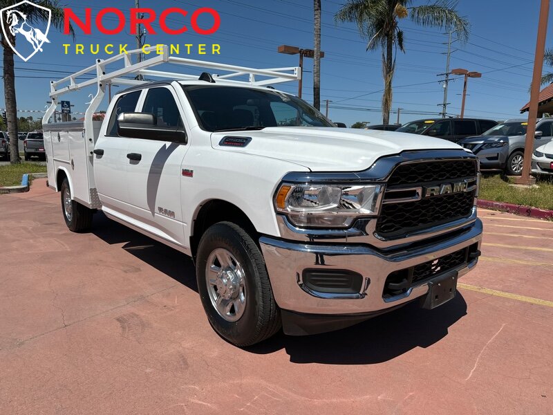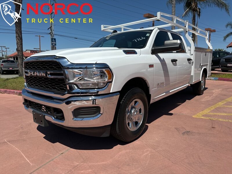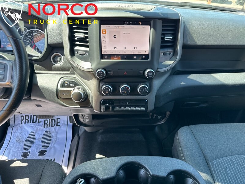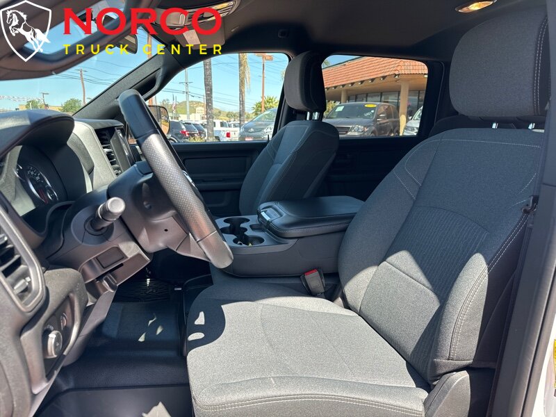 -- INSTALLED FEATURES: Air filtration, Front air conditioning, Front air conditioning zones: single, Rear vents: second row, Airbag deactivation: occupant sensing passenger, Front airbags: dual, Side airbags: front, Side curtain airbags: front / rear, Antenna type: mast, Auxiliary audio input: Bluetooth / USB / jack, Radio: AM/FM / touch screen display / voice operated, Radio data system, Speed sensitive volume control, Total speakers: 6, ABS: 4-wheel, Brake drying, Braking assist, Electronic brakeforce distribution, Emergency braking preparation, Front brake diameter: 14.2, Front brake type: ventilated disc, Front brake width: 1.54, Power brakes, Rear brake diameter: 14.1, Rear brake type: ventilated disc, Rear brake width: 1.34, Armrests: front center, Cargo area floor mat: rubber/vinyl, Door sill trim: scuff plate, Floor material: rubber/vinyl, Steering wheel trim: urethane, Assist handle: front / rear, Cruise control, Cupholders: front, One-touch windows: 2, Overhead console: front, Power outlet(s): 12V front / USB front, Power steering, Power windows: lockout button, Push-button start, Reading lights: front, Rearview mirror: manual day/night, Steering wheel: tilt, Steering wheel mounted controls: cruise control / multi-function / phone / voice control, Storage: accessory hook / door pockets / under rear seats, Vanity mirrors: passenger, Axle ratio: 3.73, Alternator: 180 amps, Auxiliary oil cooler, Battery: maintenance-free, Battery rating: 730 CCA, Battery saver, Emissions: 50 state, Active grille shutters, Door handle color: black, Front bumper color: black, Grille color: black / black surround, Headlight bezel color: chrome, Mirror color: black, Pickup bed light: tailgate illumination, Rear bumper color: black, Tailgate: removable, Window trim: black, Infotainment: Uconnect, Infotainment screen size: 5 in., Clock, Compass, Digital odometer, External temperature display, Fuel economy display: MPG / range, Gauge: tachometer, Instrument cluster screen size: 3.5 in., Multi-function display, Powertrain hour meter, Trip odometer, Warnings and reminders: low fuel level / low oil level / maintenance due, Daytime running lights, Headlights: auto delay off / auto on/off / halogen / quad headlights, Side mirror adjustments: manual folding / power, Side mirrors: heated, Camera system: rearview, Child safety door locks, Child seat anchors: LATCH system, Crumple zones: front, Rearview monitor: in dash, Emergency locking retractors: front / rear, Front seatbelts: 3-point, Rear seatbelts: 3-point, Seatbelt force limiters: front, Seatbelt pretensioners: front, Seatbelt warning sensor: front, Driver seat manual adjustments: reclining / 4, Front headrests: adjustable / 2, Front seat type: 40-20-40 split bench, Passenger seat manual adjustments: reclining / 4, Rear headrests: adjustable / 3, Rear seat folding: folds up, Rear seat type: bench, Upholstery: vinyl, Anti-theft system: vehicle immobilizer, Power door locks: auto-locking, Hill holder control, Roll stability control, Stability control, Traction control, Trailer stability control, Front shock type: gas, Front spring type: coil, Front stabilizer bar, Front suspension classification: solid axle, Front suspension type: multi-link, Rear shock type: gas, Rear spring type: coil, Rear stabilizer bar, Rear suspension classification: solid live axle, Rear suspension type: multi-link, Suspension control: frequency selective, Electronic messaging assistance: voice operated / with read function, Hands-free phone call integration: voice operated, Wireless data link: Bluetooth, Spare tire mount location: underbody, Spare tire size: full-size, Spare wheel type: steel, Tire Pressure Monitoring System, Tire type: all season, Wheels: steel, Auxiliary transmission fluid cooler, Pickup bed cargo management: tie-down anchors, Trailer hitch: Class V, Trailer wiring: 4-pin / 7-pin, Front wipers: variable intermittent, Power windows: safety reverse, Rear privacy glass, Solar-tinted glass