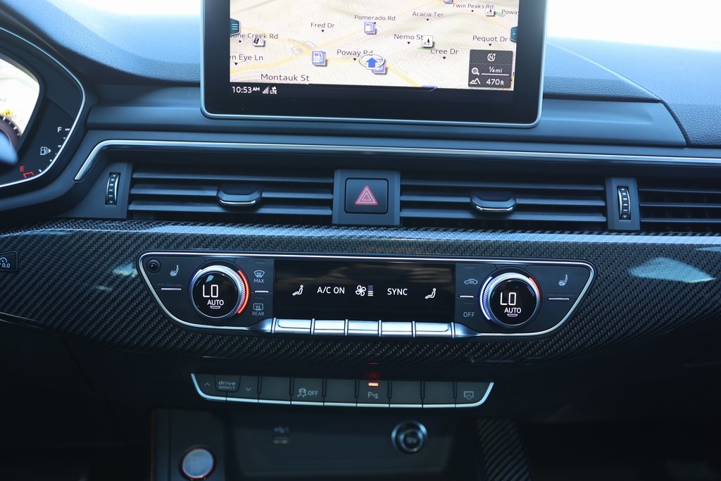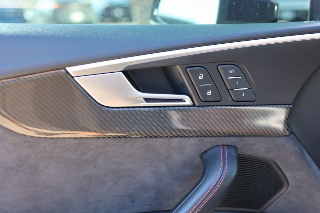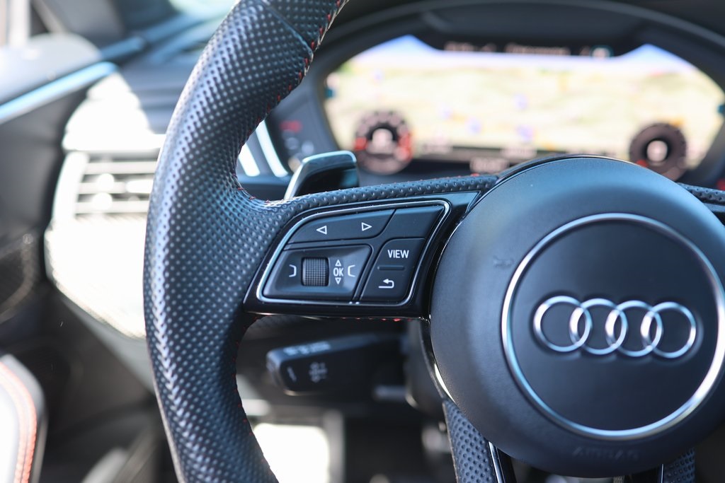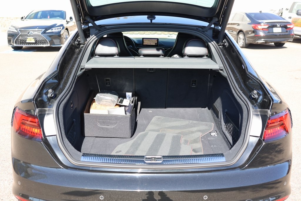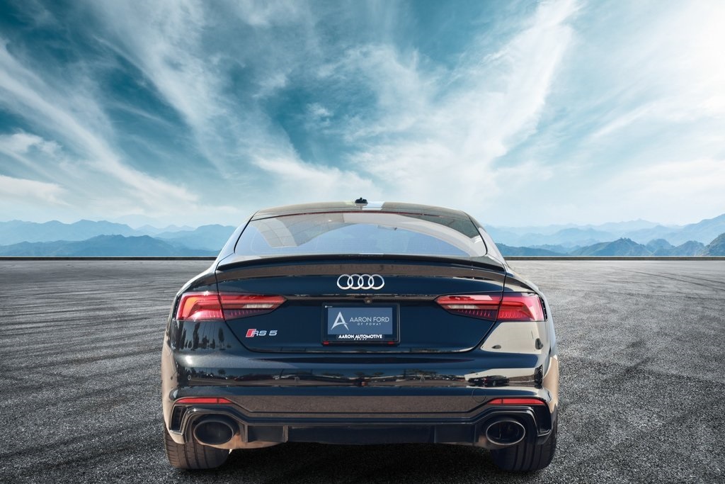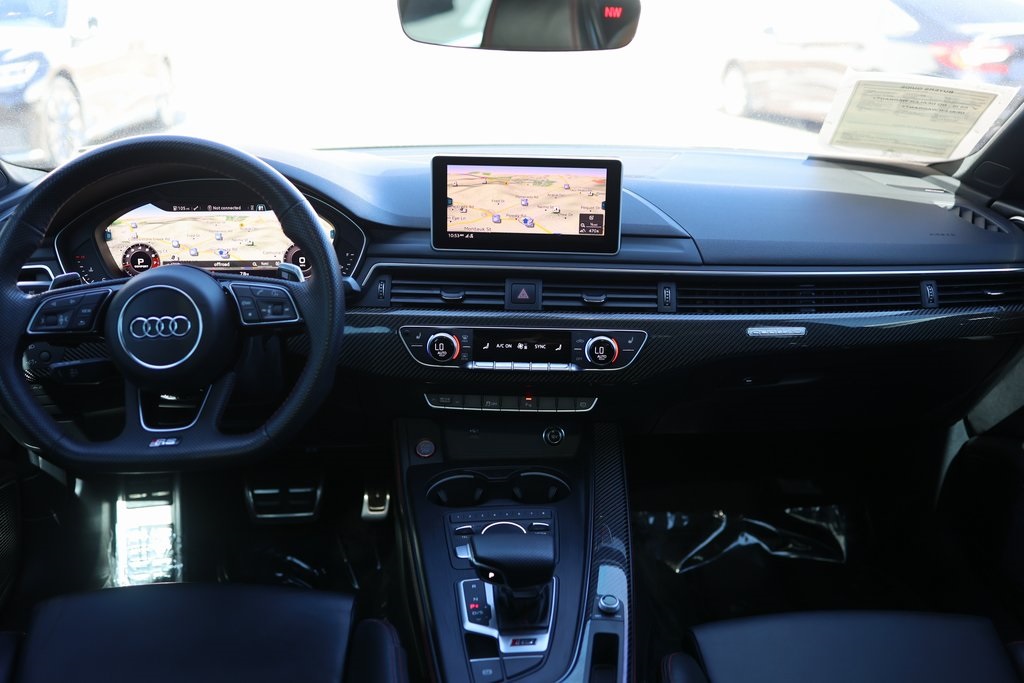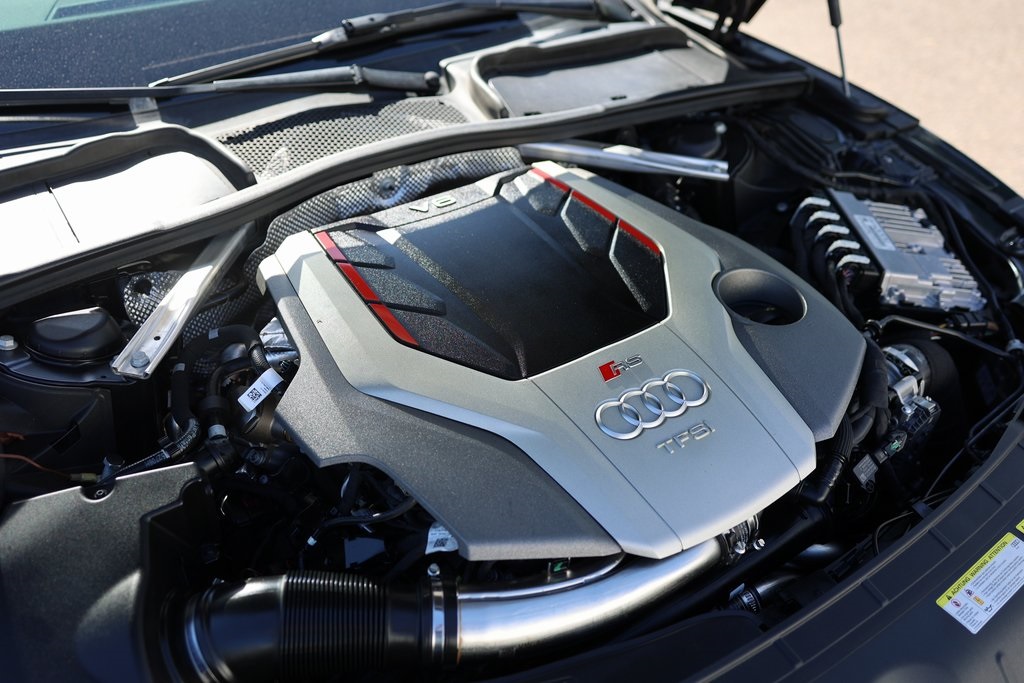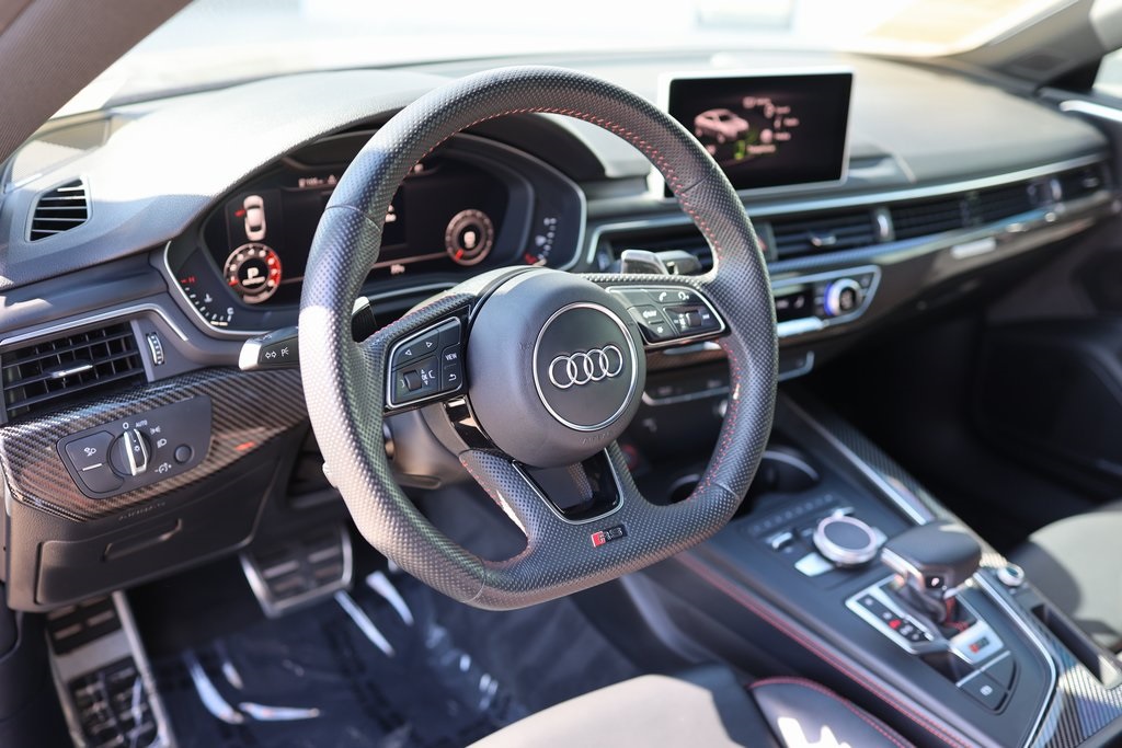 RS 5 2.9T quattro, 4D Hatchback, 2.9L TFSI 6 Cylinder 24V DOHC, 8-Speed Automatic with Tiptronic, Mythos Black Metallic, Black w/Crescendo Red Stitching w/Fine Nappa Leather Seating Surfaces, Audi smartphone interface (Apple CarPlay/Android Auto), Bang & Olufsen Sound System w/3D Sound, Black Optic Package, Delay-off headlights, Exterior Parking Camera Rear, Fine Nappa Leather Package, Fine Nappa Leather Seating Surfaces, Headlight cleaning, Heated door mirrors, Heated front seats, Heated S Sport Front Seats, High Gloss Black Exterior Kit w/quattro Script, High-Gloss Black Exterior Mirror Housings, LED Interior Lighting Plus Package, Navigation system: Audi Navigation Plus, Power Liftgate, Power moonroof, Wheels: 20" 5-Arm-Flag Forged Design.17/26 City/Highway MPG