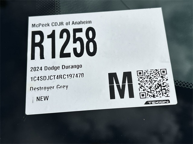 Destroyer Gray Clearcoat 2024 Dodge Durango R/T AWD 8-Speed Automatic HEMI 5.7L V8 Multi Displacement VVT INTERIOR & EXTERIOR PROFESSIONALLY DETAILED FOR DELIVERY, MCPEEK CHRYSLER DODGE JEEP RAM FAMILY OWNED AND OPERATED SINCE 1961 !!!!!, AWD.All prices are subject to change without notice. All vehicles subject to prior sale. Advertised price does not include Dealer Installed Accessories or Commercial Bed/Body Upfits. Please contact dealer to receive the most up to date pricing information and complete details.Receive Free lube and oil filter changes for up to 45,000 miles for 3 years!!! McPeek's Dodge of Anahiem 1221 S. Auto Center Drive Anahiem, CA 92806 714-262-4902. Price includes: $3600 - 2024 CDJ National Power Dollars Bonus Cash 39CR1. Exp. 04/30/2024