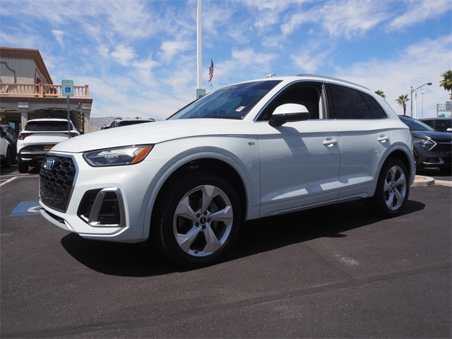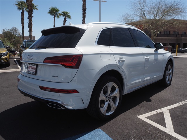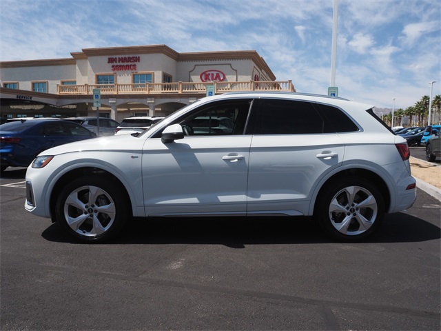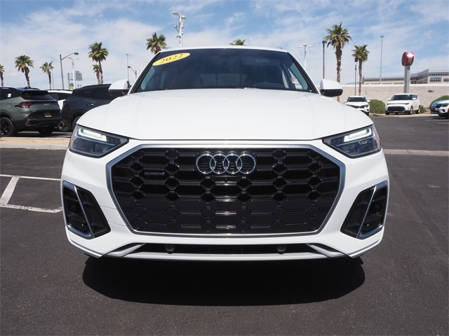 Recent Arrival!CARFAX One-Owner.Priced below KBB Fair Purchase Price!Odometer is 11769 miles below market average!23/28 City/Highway MPG2022 Audi Q5 quattro quattro 7-Speed Automatic S tronic 2.0L Turbocharged Leather.If you don't drive here, you can't save here!Price may not include recon fee. Leather, 10 Speakers, 4-Wheel Disc Brakes, 5.302 Axle Ratio, ABS brakes, Air Conditioning, Alloy wheels, AM/FM radio, Auto High-beam Headlights, Auto-dimming Rear-View mirror, Automatic temperature control, Brake assist, Bumpers: body-color, Compass, Delay-off headlights, Driver door bin, Driver vanity mirror, Dual front impact airbags, Dual front side impact airbags, Electronic Stability Control, Emergency communication system: Audi connect CARE, Exterior Parking Camera Rear, Four wheel independent suspension, Front anti-roll bar, Front Bucket Seats, Front Center Armrest, Front dual zone A/C, Front fog lights, Front reading lights, Garage door transmitter: HomeLink, Genuine wood console insert, Genuine wood dashboard insert, Genuine wood door panel insert, Heated 8-Way Power Front Bucket Seats, Heated door mirrors, Heated front seats, Illuminated entry, Leather Seating Surfaces, Leather Shift Knob, Low tire pressure warning, Occupant sensing airbag, Outside temperature display, Overhead airbag, Overhead console, Panic alarm, Passenger door bin, Passenger vanity mirror, Power door mirrors, Power driver seat, Power Liftgate, Power passenger seat, Power steering, Power windows, Radio data system, Radio: Audi Sound System, Rain sensing wipers, Rear air conditioning, Rear anti-roll bar, Rear fog lights, Rear reading lights, Rear seat center armrest, Rear window defroster, Rear window wiper, Remote keyless entry, Roof rack, Security system, Speed control, Speed-sensing steering, Speed-Sensitive Wipers, Split folding rear seat, Spoiler, Steering wheel mounted audio controls, Tachometer, Telescoping steering wheel, Tilt steering wheel, Traction control, Trip computer, Turn signal indicator mirrors, Variably intermittent wipers, and Wheels: 18" 5-Arm-Star Design.
