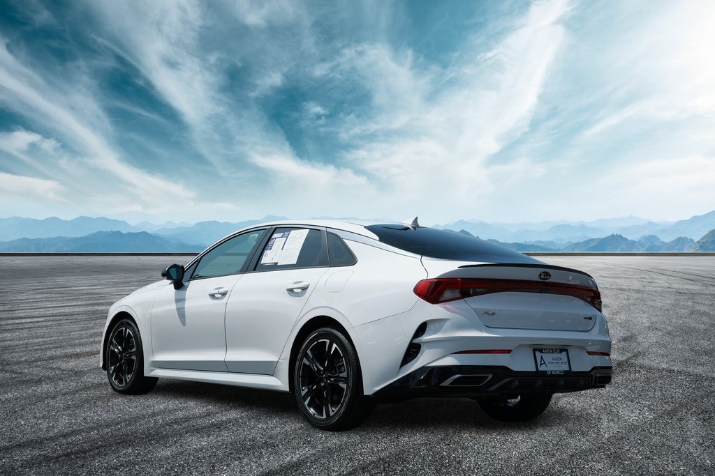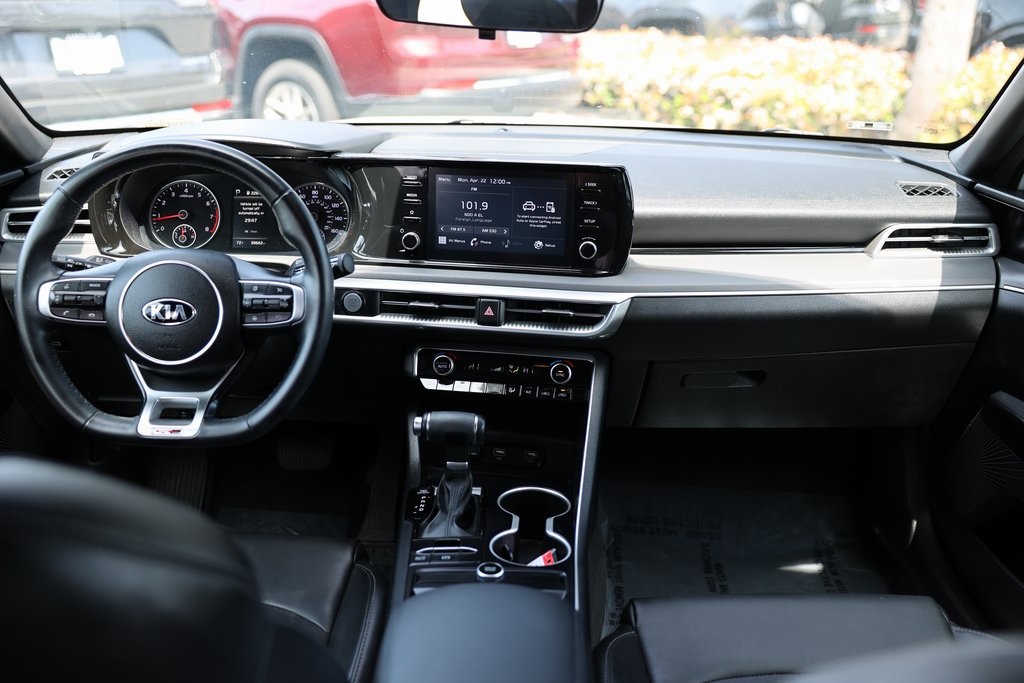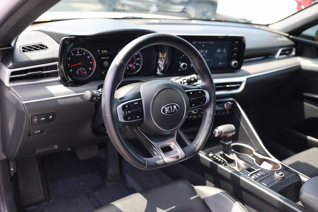 Priced below KBB Fair Purchase Price!K5 GT-Line, 4D Sedan, 1.6L I4 DGI, 8-Speed Automatic, FWD, Glacial White Pearl, Black Cloth, Alloy wheels, Apple CarPlay & Android Auto, Cloth/Leatherette Seat Trim, Knee airbag, Power driver seat.CARFAX One-Owner.