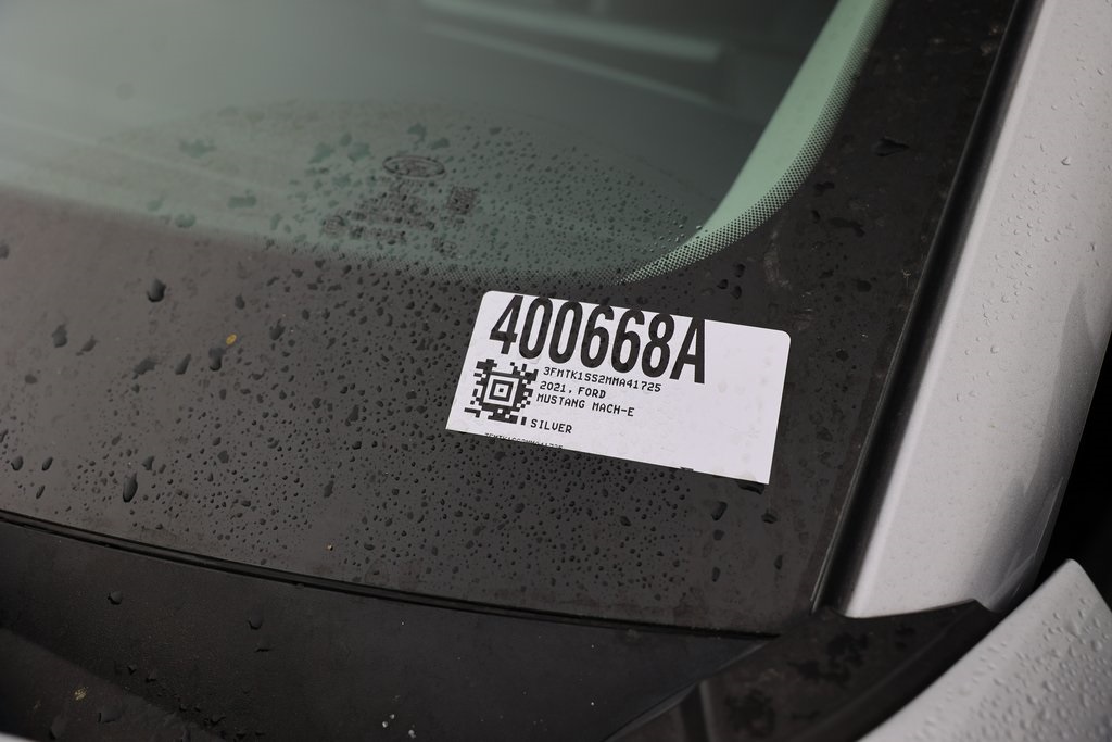 Iconic Silver Metallic 2021 Ford Mustang Mach-E Select AWD Single-Speed Automatic Electric Motor 360 Degree Camera, 6-Way Manual Front Passenger Seat, ActiveX Bucket Seats, BlueCruise Hands-Free Driving, Cargo Area Cover, Comfort/Technology Package, Equipment Group 100A, Exterior Parking Camera Rear, Ford Co-Pilot360 Active 2.0, Fully automatic headlights, Hands-Free Foot-Activated Liftgate, Heated Front Row Seats, Heated Steering Wheel, Memory Driver's Seat & Side-View Mirrors, Navigation System, SiriusXM Radio w/360L, SYNC 4A w/Enhanced Voice Recognition, Wheels: 18" Carbonized Gray-Painted Aluminum.Recent Arrival! 100/86 City/Highway MPGAwards: * JD Power Automotive Performance, Execution and Layout (APEAL) Study * NACTOY 2021 North American Utility of the Year