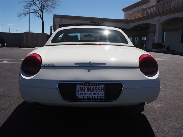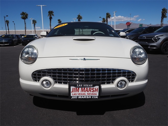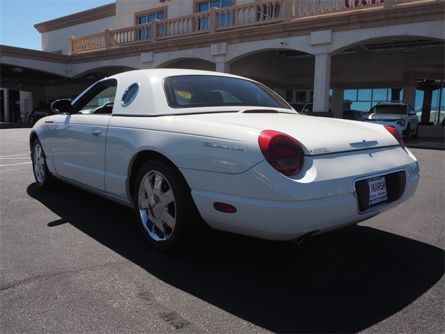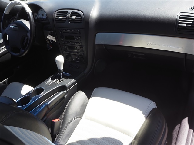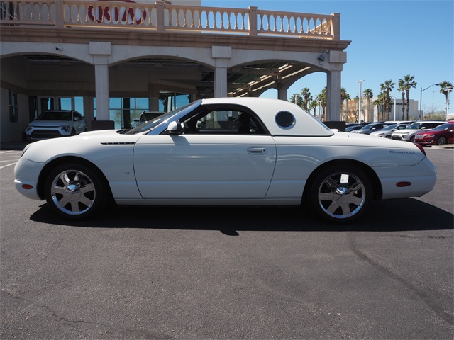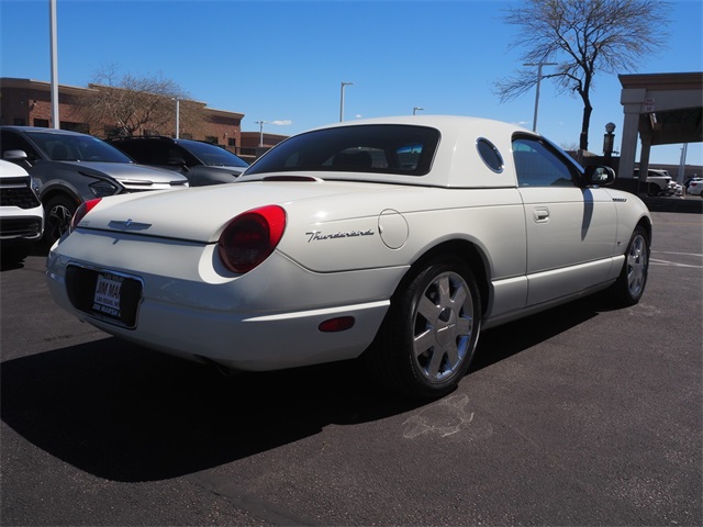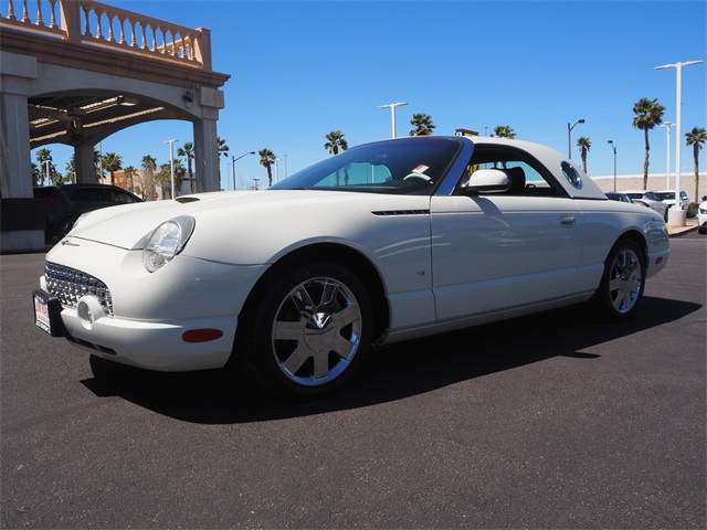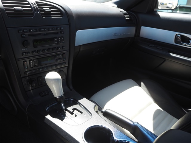 CARFAX One-Owner.Priced below KBB Fair Purchase Price!Odometer is 16946 miles below market average!White 2003 Ford Thunderbird RWD 5-Speed Automatic 3.9L V8 DOHC 32VIf you don't drive here, you can't save here!Price may not include recon fee. 4-Wheel Disc Brakes, 8 Speakers, ABS brakes, Air Conditioning, Alloy wheels, AM/FM radio, Audiophile ETR AM/FM Stereo w/In-Dash 6-CD, Auto tilt-away steering wheel, Automatic temperature control, Bodyside moldings, Bumpers: body-color, CD player, Convertible roof lining, Delay-off headlights, Driver door bin, Driver vanity mirror, Dual front impact airbags, Dual front side impact airbags, Four wheel independent suspension, Front anti-roll bar, Front Bucket Seats, Front Center Armrest, Front dual zone A/C, Front reading lights, Fully automatic headlights, Glass rear window, Illuminated entry, Leather Shift Knob, Leather steering wheel, Outside temperature display, Panic alarm, Passenger cancellable airbag, Passenger door bin, Passenger vanity mirror, Power convertible roof, Power door mirrors, Power driver seat, Power passenger seat, Power steering, Power windows, Premium audio system: Audiophile, Radio data system, Rear anti-roll bar, Rear window defroster, Remote keyless entry, Security system, Speed control, Speed-sensing steering, Steering wheel mounted audio controls, Tachometer, Telescoping steering wheel, Tilt steering wheel, Traction control, and Variably intermittent wipers.
