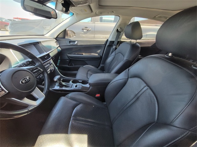 Priced below KBB Fair Purchase Price!Odometer is 27371 miles below market average!27/37 City/Highway MPGSparkling Silver 2020 Kia Optima EX Premium FWD 7-Speed Automatic 1.6L I4 DOHC Black Leather.If you don't drive here, you can't save here!Price may not include recon fee. Kia Certified Pre-Owned Certified, Black Leather, 10 Speakers, 4-Wheel Disc Brakes, ABS brakes, Air Conditioning, Alloy wheels, AM/FM radio: SiriusXM, Anti-whiplash front head restraints, Apple CarPlay & Android Auto, Auto High-beam Headlights, Auto-dimming Rear-View mirror, Automatic temperature control, Brake assist, Bumpers: body-color, Carpet Floor Mats, Delay-off headlights, Driver door bin, Driver vanity mirror, Dual front impact airbags, Dual front side impact airbags, Electronic Stability Control, Emergency communication system: UVO eServices, Four wheel independent suspension, Front anti-roll bar, Front Bucket Seats, Front Center Armrest, Front dual zone A/C, Front fog lights, Front reading lights, Fully automatic headlights, Heated & Ventilated Front Bucket Seats, Heated door mirrors, Heated front seats, Heated steering wheel, Illuminated entry, Knee airbag, Leather Seat Trim, Leather Shift Knob, Leather steering wheel, Low tire pressure warning, Memory seat, Navigation System, Occupant sensing airbag, Outside temperature display, Overhead airbag, Overhead console, Panic alarm, Passenger door bin, Passenger vanity mirror, Power door mirrors, Power driver seat, Power moonroof, Power passenger seat, Power steering, Power windows, Radio data system, Radio: harman/kardon AM/FM/MP3/SiriusXM Audio, Rear anti-roll bar, Rear reading lights, Rear seat center armrest, Rear window defroster, Remote keyless entry, Security system, Speed control, Speed-sensing steering, Split folding rear seat, Steering wheel mounted audio controls, Tachometer, Telescoping steering wheel, Tilt steering wheel, Traction control, Trip computer, Turn signal indicator mirrors, Variably intermittent wipers, Ventilated front seats, and Wheels: 6.5J x 17" Machine Finish Alloy.