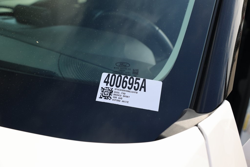 Oxford White 2022 Ford Bronco Sport Badlands 4WD 8-Speed Automatic EcoBoost 2.0L I4 GTDi DOHC Turbocharged VCT Air Conditioning, Cargo Management System, Class II Trailer Tow Package w/Trailer Sway Control, Equipment Group 400A, Front Bucket Seats, Fully automatic headlights, SYNC 3 Communications & Entertainment System, SYNC 3/Apple CarPlay/Android Auto, Wheels: 17" Carbonized Gray-Painted Aluminum.Recent Arrival! 21/26 City/Highway MPG
