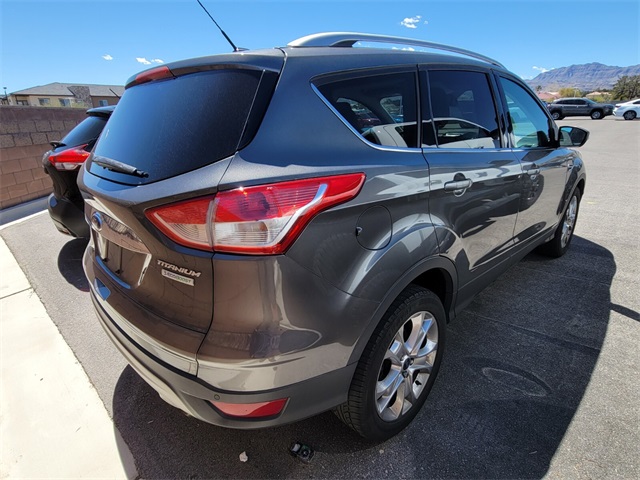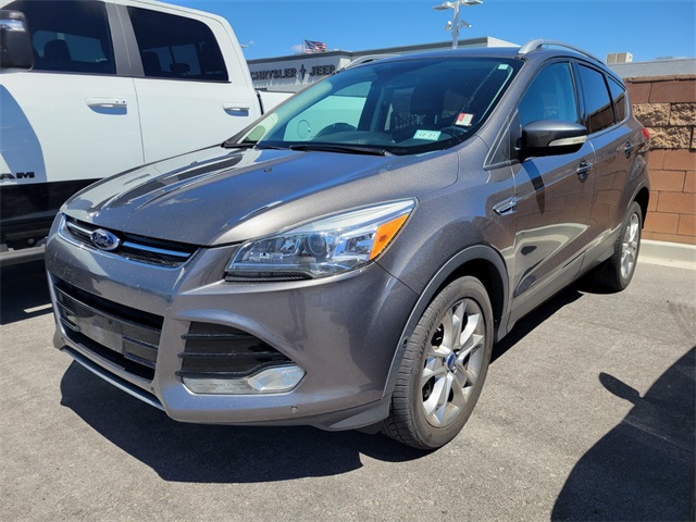 Recent Arrival!Odometer is 6165 miles below market average!23/32 City/Highway MPGGray 2014 Ford Escape Titanium FWD 6-Speed Automatic EcoBoost 1.6L I4 GTDi DOHC Turbocharged VCTIf you don't drive here, you can't save here!Awards: * 2014 KBB.com 10 Best SUVs Under $25,000 * 2014 KBB.com Brand Image AwardsPrice may not include recon fee. 10 Speakers, 3.21 Axle Ratio, 4-Wheel Disc Brakes, ABS brakes, Air Conditioning, Alloy wheels, AM/FM radio: SiriusXM, Auto-dimming Rear-View mirror, Automatic temperature control, Brake assist, Bumpers: body-color, CD player, Compass, Delay-off headlights, Driver door bin, Driver vanity mirror, Dual front impact airbags, Dual front side impact airbags, Electronic Stability Control, Exterior Parking Camera Rear, Four wheel independent suspension, Front anti-roll bar, Front Bucket Seats, Front Center Armrest, Front dual zone A/C, Front fog lights, Front reading lights, Fully automatic headlights, Garage door transmitter, Heated door mirrors, Heated front seats, Heated Leather-Trimmed Buckets w/60/40 Rear Seat, Illuminated entry, Knee airbag, Leather Shift Knob, Low tire pressure warning, Memory seat, Occupant sensing airbag, Outside temperature display, Overhead airbag, Overhead console, Panic alarm, Passenger door bin, Passenger vanity mirror, Power door mirrors, Power driver seat, Power Liftgate, Power steering, Power windows, Radio data system, Radio: AM/FM Single CD/MP3, Rear anti-roll bar, Rear Parking Sensors, Rear reading lights, Rear seat center armrest, Rear window defroster, Rear window wiper, Remote keyless entry, Roof rack: rails only, Security system, Speed control, Speed-sensing steering, Split folding rear seat, Steering wheel mounted audio controls, SYNC w/MyFord Touch & SYNC Services, Tachometer, Telescoping steering wheel, Tilt steering wheel, Traction control, Trip computer, Turn signal indicator mirrors, Variably intermittent wipers, and Wheels: 18" Sparkle Nickel Painted Aluminum.