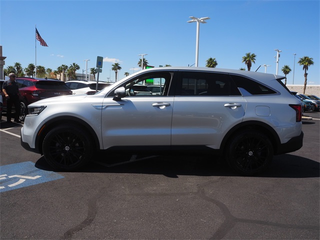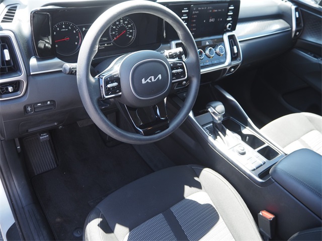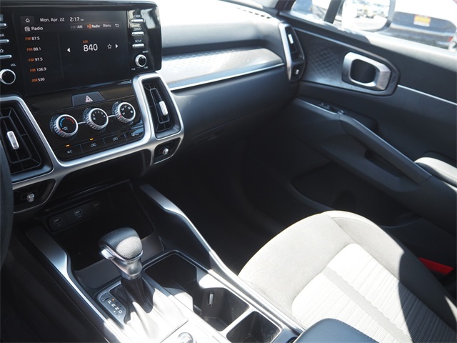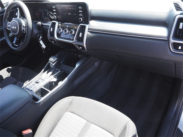 Recent Arrival!CARFAX One-Owner.Priced below KBB Fair Purchase Price!Odometer is 25737 miles below market average!24/29 City/Highway MPGSparkling Silver 2022 Kia Sorento LX FWD 8-Speed Automatic 2.5L I4 DGI DOHC 16V LEV3-ULEV70 191hpIf you don't drive here, you can't save here!Price may not include recon fee. Kia Certified Pre-Owned Certified, 3.798 Axle Ratio, 3rd row seats: split-bench, 4-Wheel Disc Brakes, 6 Speakers, 7.0J x 17" Alloy Wheels, ABS brakes, Air Conditioning, Alloy wheels, AM/FM radio, Apple CarPlay & Android Auto, Auto High-beam Headlights, Brake assist, Bumpers: body-color, Cargo Net, Carpeted Floor Mats, Cloth Seat Trim, Delay-off headlights, Driver door bin, Driver vanity mirror, Dual front impact airbags, Dual front side impact airbags, Electronic Stability Control, Exterior Parking Camera Rear, Four wheel independent suspension, Front anti-roll bar, Front Bucket Seats, Front Center Armrest, Front reading lights, Fully automatic headlights, Heated door mirrors, Illuminated entry, Knee airbag, Low tire pressure warning, Occupant sensing airbag, Outside temperature display, Overhead airbag, Overhead console, Panic alarm, Passenger door bin, Passenger vanity mirror, Power door mirrors, Power steering, Power windows, Radio data system, Radio: AM/FM Audio System, Rear anti-roll bar, Rear reading lights, Rear seat center armrest, Rear window defroster, Rear window wiper, Remote keyless entry, Security system, Speed control, Speed-sensing steering, Split folding rear seat, Spoiler, Steering wheel mounted audio controls, Tachometer, Telescoping steering wheel, Tilt steering wheel, Traction control, Trip computer, Turn signal indicator mirrors, and Variably intermittent wipers.