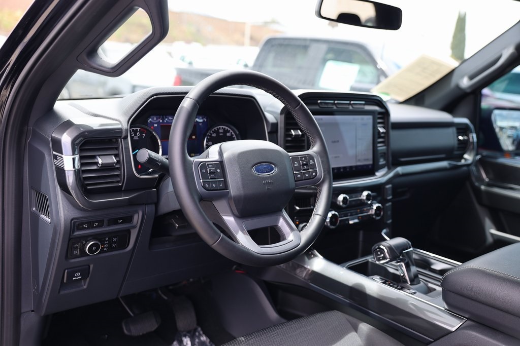 Agate Black Metallic 2023 Ford F-150 XLT 4WD 10-Speed Automatic 3.5L PowerBoost Full-Hybrid V6 3.5L PowerBoost Full-Hybrid V6, 4WD, 10-Way Power Driver & Passenger Seats, 2-Bar Style Grille w/Chrome 2 Minor Bars, 8" Productivity Screen in Instrument Cluster, ABS brakes, Auto-Dimming Rear-View Mirror, Brake assist, Bright Polished Step Bars, Chrome Door & Tailgate Handles w/Body-Color Bezel, Chrome Single-Tip Exhaust, Class IV Trailer Hitch Receiver, Compass, Dual Zone Electronic Automatic Temperature Control, Electronic Stability Control, Equipment Group 302A High, Exterior Parking Camera Rear, Fully automatic headlights, GVWR: 7,350 lbs Payload Package, Heated door mirrors, Heated Front Seats, Illuminated entry, Intelligent Access w/Push Button Start, LED Reflector Headlamps, LED Sideview Mirror Spotlights, Low tire pressure warning, Onboard 400W Outlet, Power Glass Heated Sideview Mirrors, Radio: AM/FM SiriusXM w/360L, Rear Under-Seat Storage, Remote keyless entry, Remote Start System w/Remote Tailgate Release, SecuriCode Drivers Side Keyless-Entry Keypad, SYNC 4 w/Enhanced Voice Recognition, Traction control, Wrapped Steering Wheel, XLT Chrome Appearance Package, Zone Lighting.Recent Arrival!