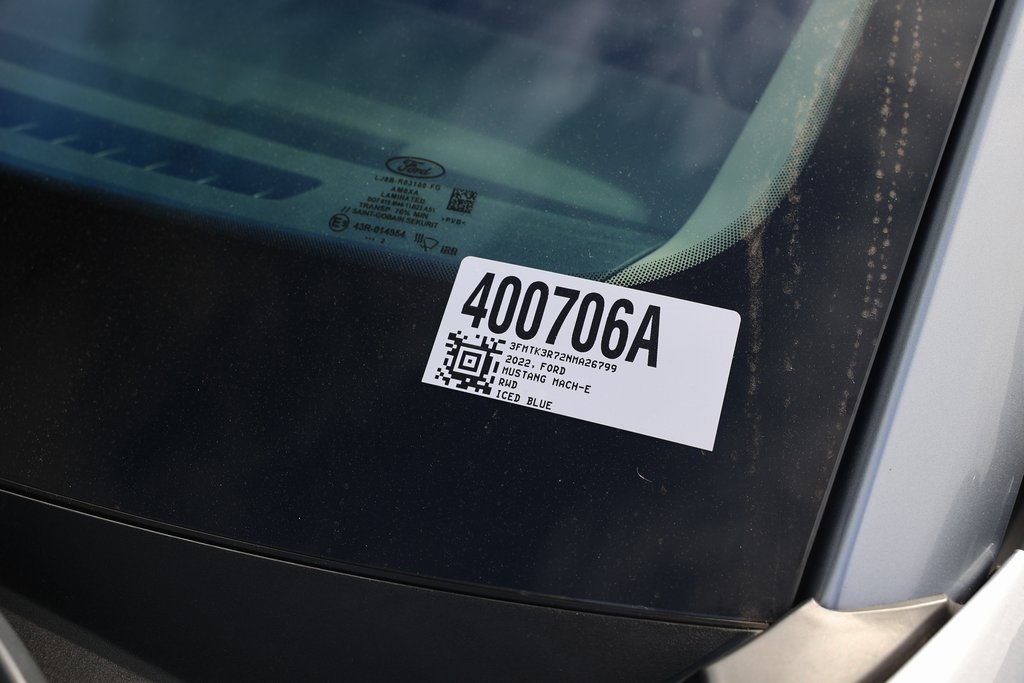 Iced Blue Silver Metallic 2022 Ford Mustang Mach-E Premium RWD Single-Speed Automatic Electric Motor Air Conditioning, Equipment Group 300A, Exterior Parking Camera Rear, Front Bucket Seats, Fully automatic headlights, Heated Perforated ActiveX Bucket Seats, Navigation System, Power Liftgate, SYNC 4A w/Enhanced Voice Recognition, Wheels: 19" Machined-Face Aluminum.Recent Arrival! 104/90 City/Highway MPG