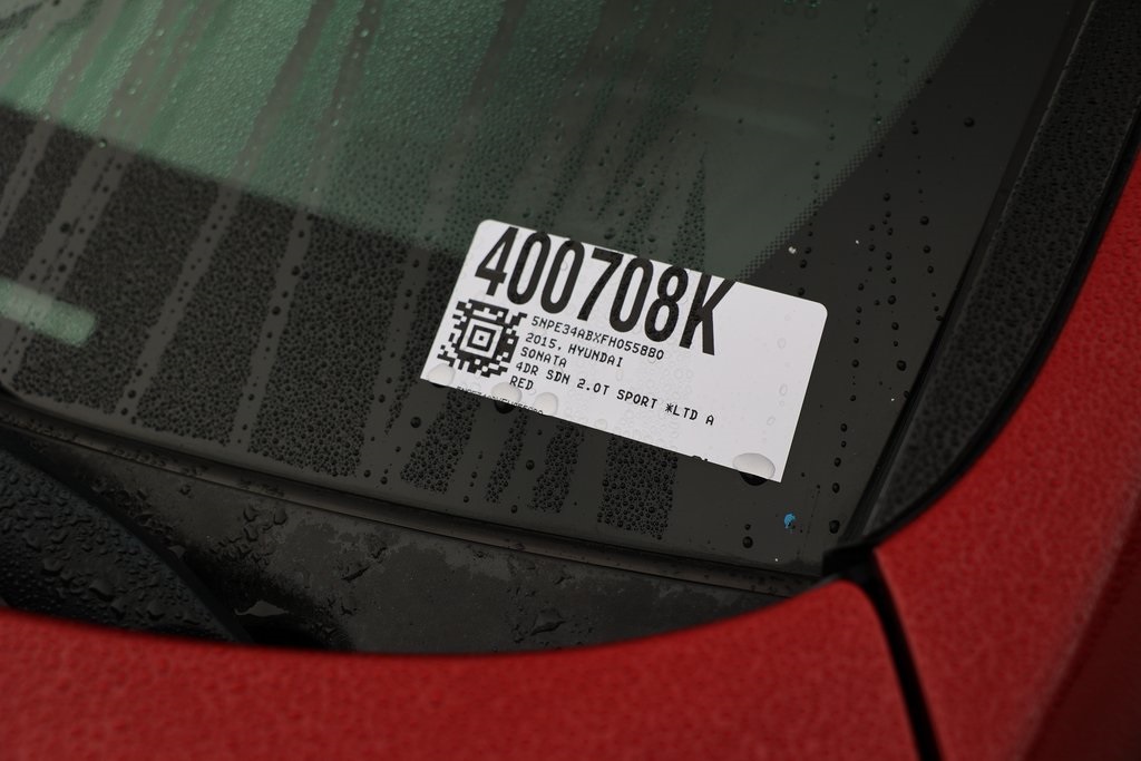 Red 2015 Hyundai Sonata Sport 2.0T FWD 6-Speed Automatic with Shiftronic 2.0L 4-Cylinder DGI Turbocharged Gone Leather, 18 x 7.5J Hyper Silver Aluminum Alloy Wheels, 4.2-inch Color LCD Multi-Info Display, Air Conditioning, Automatic High Beam Assist, Electronic Parking Brake, Exterior Parking Camera Rear, Forward Collision Warning (FCW), Heated Front Bucket Seats, Heated Rear Seats, Heated/Ventilated Front Bucket Seats (DISC), High-Gloss Window Surrounds, High-Intensity Discharge Headlights, Integrated Memory System (IMS), Lane Departure Warning System (LDWS), Leather Seating Surfaces w/Contrast Stitching, LED Interior Light Kit, Option Group 07 (DISC), Panoramic Sunroof, Radio: AM/FM/SiriusXM/CD/MP3 w/Navigation (DISC), Rear Parking Assistance System, Rear Window Manual Sunshade, SiriusXM Travel Link (Complimentary Trial), Smart Cruise Control, Ultimate Package 07.Recent Arrival! 23/32 City/Highway MPGAwards: * 2015 KBB.com Best Buy Awards Finalist * 2015 KBB.com 10 Most Comfortable Cars Under $30,000 * 2015 KBB.com 10 Best Sedans Under $25,000 * 2015 KBB.com 15 Best Family Cars