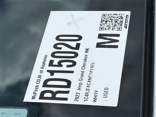 Certified. Clean CARFAX. CARFAX One-Owner. INTERIOR & EXTERIOR PROFESSIONALLY DETAILED FOR DELIVERY, MCPEEK CHRYSLER DODGE JEEP RAM FAMILY OWNED AND OPERATED SINCE 1961 !!!!!.Bright White Clearcoat 2022 Jeep Grand Cherokee WK Laredo X 4WD 8-Speed AutomaticFCA US LLC Certified Pre-Owned Details: * Transferable Warranty * 125 Point Inspection * Roadside Assistance * Warranty Deductible: $100 * Limited Warranty: 3 Month/3,000 Mile (whichever comes first) after new car warranty expires or from certified purchase date * Includes First Day Rental, Car Rental Allowance, and Trip Interruption Benefits. SiriusXM 3 month trial subscription * Vehicle History * Powertrain Limited Warranty: 84 Month/100,000 Mile (whichever comes first) from original in-service dateReceive Free lube and oil filter changes for up to 45,000 miles for 3 years!!! McPeek's Dodge of Anahiem 1221 S. Auto Center Drive Anahiem, CA 92806 714-262-4902.