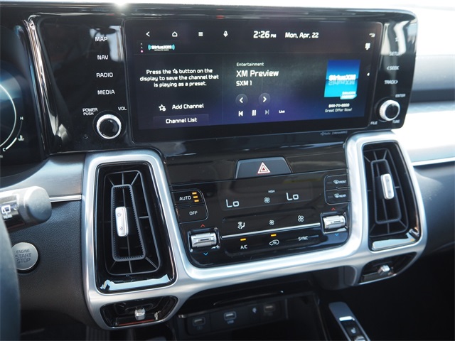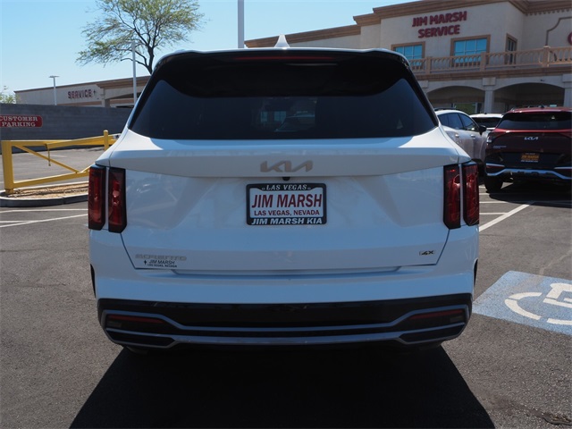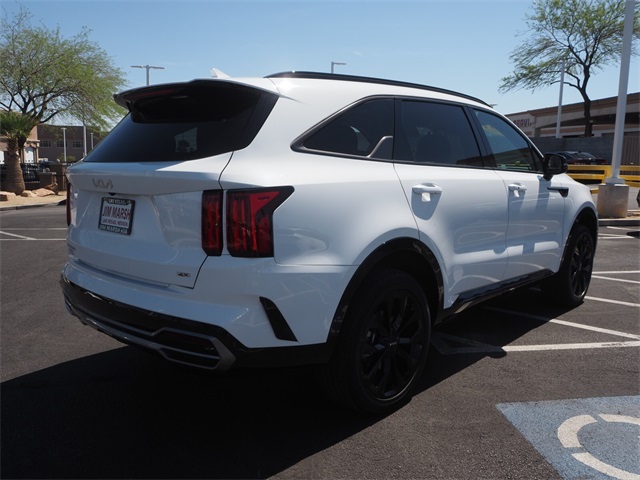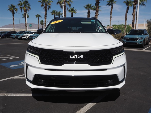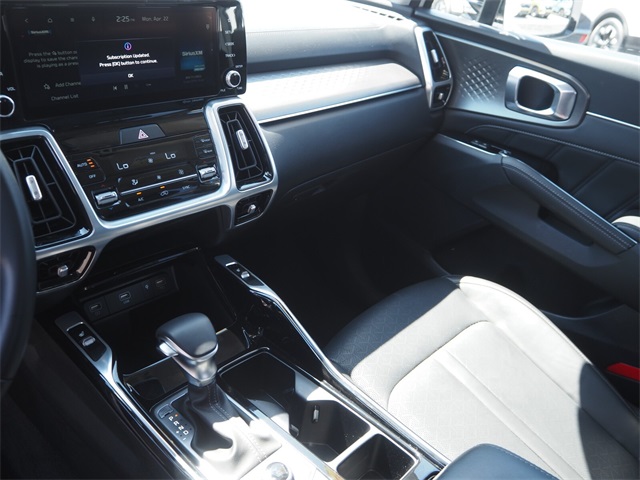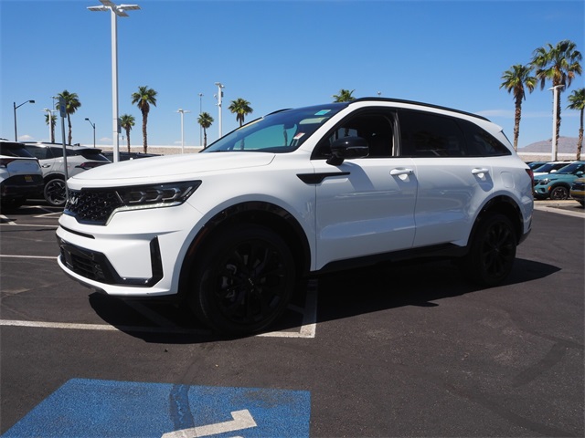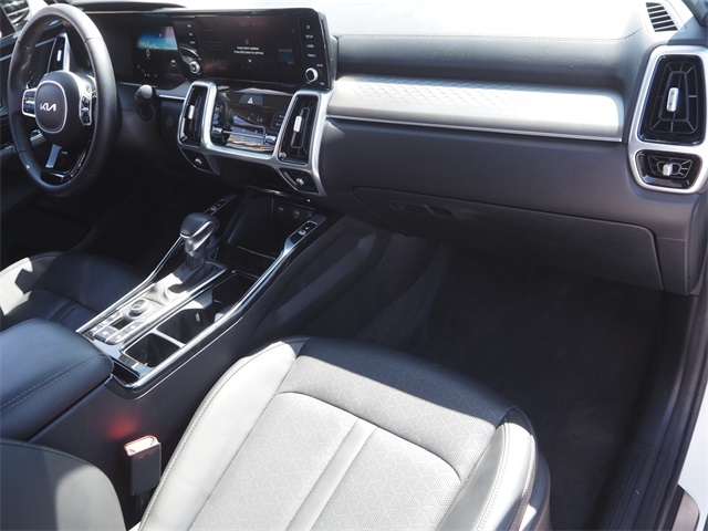 Priced below KBB Fair Purchase Price!22/27 City/Highway MPGGlacial White Pearl 2023 Kia Sorento SX AWD 8-Speed DCT 2.5L I4 DGI Turbocharged DOHC 16V LEV3-ULEV70 281hp AWD.If you don't drive here, you can't save here!Price may not include recon fee. AWD, 3.316 Axle Ratio, 3rd row seats: split-bench, 4-Wheel Disc Brakes, 6 Speakers, ABS brakes, Air Conditioning, Alloy wheels, AM/FM radio: SiriusXM, Apple CarPlay & Android Auto, Auto High-beam Headlights, Auto-dimming Rear-View mirror, Automatic temperature control, Brake assist, Bumpers: body-color, Carpet Floor Mats, Delay-off headlights, Driver door bin, Driver vanity mirror, Dual front impact airbags, Dual front side impact airbags, Electronic Stability Control, Emergency communication system, Exterior Parking Camera Rear, Four wheel independent suspension, Front anti-roll bar, Front Bucket Seats, Front Center Armrest, Front dual zone A/C, Front fog lights, Front reading lights, Fully automatic headlights, Heated door mirrors, Heated Front Bucket Seats, Heated front seats, Illuminated entry, Knee airbag, Leather steering wheel, Low tire pressure warning, Navigation System, Occupant sensing airbag, Outside temperature display, Overhead airbag, Overhead console, Panic alarm, Passenger door bin, Passenger vanity mirror, Power door mirrors, Power driver seat, Power Liftgate, Power moonroof, Power passenger seat, Power steering, Power windows, Radio data system, Radio: AM/FM Audio System, Rain sensing wipers, Rear air conditioning, Rear anti-roll bar, Rear reading lights, Rear window defroster, Rear window wiper, Remote keyless entry, Roof rack: rails only, Security system, Speed control, Speed-sensing steering, Split folding rear seat, Spoiler, Steering wheel mounted audio controls, SynTex Artificial Leather Seat Trim, Tachometer, Telescoping steering wheel, Tilt steering wheel, Traction control, Trip computer, Turn signal indicator mirrors, Variably intermittent wipers, and Wheels: 8.5J x 20" Gloss Black Alloy.
