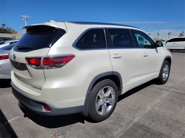 Recent Arrival!Odometer is 53302 miles below market average!White 2014 Toyota Highlander Limited AWD 6-Speed Automatic Electronic with Overdrive 3.5L V6 DOHC Dual VVT-i 24V AWD.If you don't drive here, you can't save here!Awards: * 2014 KBB.com Best Resale Value AwardsPrice may not include recon fee. AWD, 12 Speakers, 3rd row seats: split-bench, 4-Wheel Disc Brakes, 4.154 Axle Ratio, ABS brakes, Air Conditioning, Alloy wheels, AM/FM radio: SiriusXM, Anti-whiplash front head restraints, Auto-dimming Rear-View mirror, Automatic temperature control, Brake assist, Bumpers: body-color, CD player, Delay-off headlights, Driver door bin, Driver vanity mirror, Dual front impact airbags, Dual front side impact airbags, Electronic Stability Control, Exterior Parking Camera Rear, Four wheel independent suspension, Front anti-roll bar, Front Bucket Seats, Front Center Armrest, Front dual zone A/C, Front fog lights, Front reading lights, Fully automatic headlights, Garage door transmitter, Heated door mirrors, Heated front seats, Heated/Ventilated Front Bucket Seats, Illuminated entry, Knee airbag, Leather Shift Knob, Low tire pressure warning, Memory seat, Navigation System, Occupant sensing airbag, Outside temperature display, Overhead airbag, Overhead console, Panic alarm, Passenger door bin, Passenger vanity mirror, Perforated Leather Seat Material, Power door mirrors, Power driver seat, Power Liftgate, Power moonroof, Power passenger seat, Power steering, Power windows, Radio: Entune Premium JBL Audio w/Nav & App Suite, Rear air conditioning, Rear anti-roll bar, Rear Parking Sensors, Rear reading lights, Rear window defroster, Rear window wiper, Reclining 3rd row seat, Remote keyless entry, Roof rack: rails only, Security system, Speed control, Speed-sensing steering, Split folding rear seat, Spoiler, Steering wheel mounted audio controls, Tachometer, Telescoping steering wheel, Tilt steering wheel, Traction control, Trip computer, Turn signal indicator mirrors, Variably intermittent wipers, Ventilated front seats, and Wheels: 19" Chromtec.