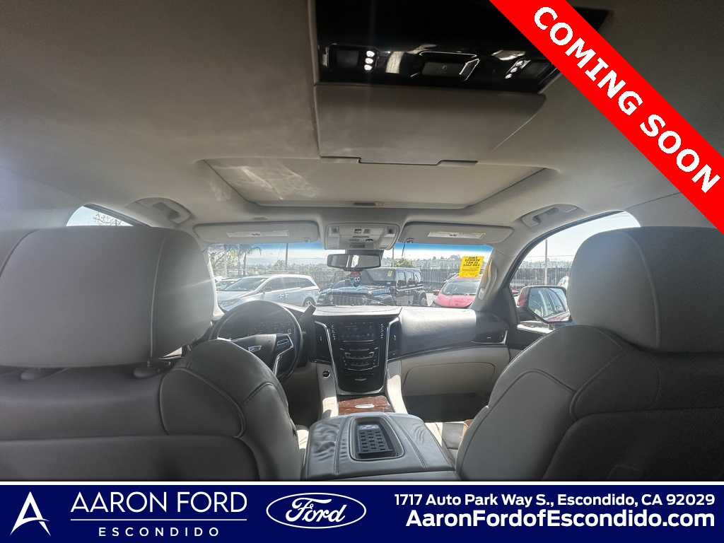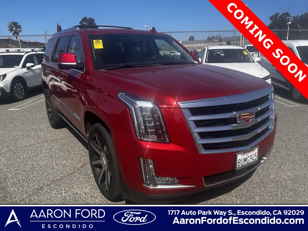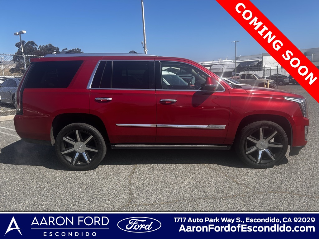 Crystal Red Tintcoat 2015 Cadillac Escalade Premium 4WD 8-Speed Automatic Vortec 6.2L V8 SIDI 4WD, Shale W/Cocoa Accents Leather, 16 Speakers, 22" x 9" 7-Spoke Ultra-Bright Aluminum Wheels, Adaptive Full-Speed Range Cruise Control, Air Conditioning, Auto-leveling suspension, Automatic Safety Belt Tightening, Black Integrated Roof Rack Rails (LPO), Bose Centerpoint Surround Sound System, Driver Assist Package, Driver Awareness Package, Electronic Powered Parking Brake, Exterior Parking Camera Rear, Forward Collision Alert, Front & Rear Automatic Braking, Heads-Up Display, Heated & Cooled Front Bucket Seats, Illuminated Door Handles, IntelliBeam Headlamps, Lane Change Alert, Lane Departure Warning System, Leather Seating Surfaces, Memory seat, Navigation System, NavTraffic, Pedal memory, Power Liftgate, Power Tilt-Sliding Sunroof w/Express-Open/Close, Preferred Equipment Group 1SC, Radio: Cadillac CUE Info/Media Ctrl Sys w/Embd Nav, Rear air conditioning, Rear Cross-Traffic Alert, Rear Seat Entertainment System, Reconfigurable 4-Color Head-Up Display, Second Row Bucket Seats, Side Blind Zone Alert, SiriusXM Satellite Audio System, Theft-Deterrent Alarm System, Theft-Deterrent Package, VAC Power 17" Disc Brakes, Vehicle Inclination Sensor, Vehicle Interior Movement Sensor, Ventilated front seats.Recent Arrival!Awards: * 2015 KBB.com 10 Best Luxury SUVsReviews: * Shop here if you need your SUV to carry up to eight passengers, all of their stuff, and tow up to 8,300 pounds. Not only can you do all that, but you’ll look good while doing it. Source: KBB.com * Available seating for up to eight passengers; strong V8 power; stout towing capacity; quiet interior. Source: Edmunds * The well-recognized Escalade has been among the Kings of the SUV family for years. For 2015, the much loved SUV has been revamped and upgraded. The classic, eye-catching look of the Escalade remains unchanged, riding high on it's traditional body-frame. But for some it's on what's on the inside that counts. The all new interior is wrapped in a wealth of perforated leather, prominent stitching and genuine wood, while tiered surfaces demonstrate a level of detail and craftsmanship unmatched in previous generations. The dash and instrument panel are anchored by the flashy CUE multimedia system and its 8-inch touchscreen interface. CUE uses proximity sensors to activate common options and controls as the user's hand approaches. Opt for the larger 12.3in and embrace the HD graphics. The front and rear ends use steeply stacked vertical layouts for the standard LED headlights and taillights, and Cadillac's grille design is presented in its largest form yet. The Escalade also carries over a 6.2-liter V8, this one comes from the latest generation of direct-injection engines, with output increased to 420HP and 460 lb-ft of torque. This combination combusts in a freight train-like pull when you hit the throttle. The base rear-wheel-drive Escalade can tow up to 8,200 pounds – making it useful for those who aren't afraid to get a little dirty. Escalade's new technologies include safety features to help protect occupants at all times; front and rear automatic braking relies short-range radar technology and ultrasonic sensors to help avoid front and rear low-speed collisions. Driver Awareness packages include Forward Collision Alert, Lane Departure Warning System, and the patented Safety Alert Seat, which uses directional vibrations to alert the driver to potential crash threats. Source: The Manufacturer Summary