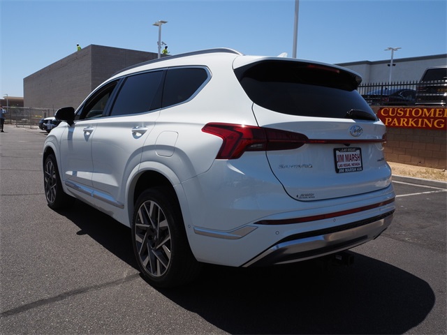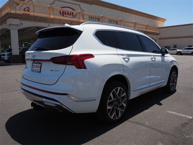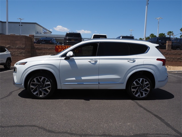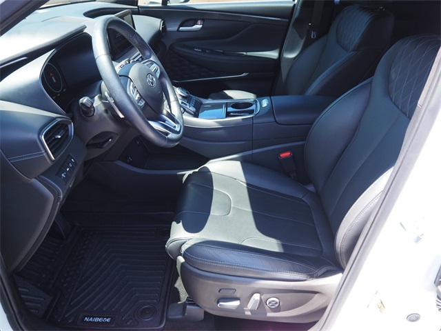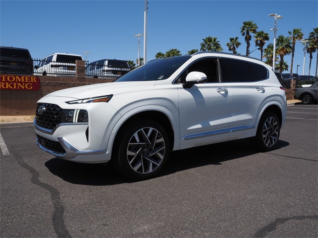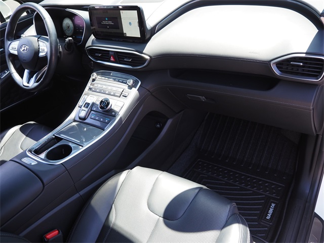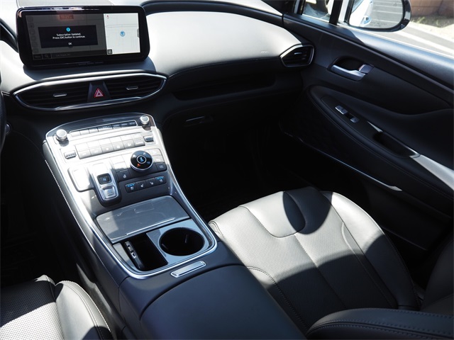 Recent Arrival!CARFAX One-Owner.Priced below KBB Fair Purchase Price!21/28 City/Highway MPGQuartz White 2023 Hyundai Santa Fe Calligraphy AWD Shiftronic 2.5L I4 AWD, Black Leather.If you don't drive here, you can't save here!Price may not include recon fee. Option Group 01, AWD, Black Leather, 12 Speakers, 4-Wheel Disc Brakes, ABS brakes, Air Conditioning, Alloy wheels, AM/FM radio: SiriusXM, Apple CarPlay & Android Auto, Auto High-beam Headlights, Auto-dimming Rear-View mirror, Automatic temperature control, Axle Ratio: 3.316, Brake assist, Bumpers: body-color, Carpeted Floor Mats, Delay-off headlights, Driver door bin, Driver vanity mirror, Dual front impact airbags, Dual front side impact airbags, Electronic Stability Control, Emergency communication system, Four wheel independent suspension, Front anti-roll bar, Front Bucket Seats, Front Center Armrest, Front dual zone A/C, Front reading lights, Fully automatic headlights, Garage door transmitter: HomeLink, harman/kardon® Speakers, Heads-Up Display, Heated & Ventilated Front Bucket Seats, Heated door mirrors, Heated front seats, Heated rear seats, Heated steering wheel, Illuminated entry, Leather steering wheel, Low tire pressure warning, Memory seat, Navigation System, Occupant sensing airbag, Outside temperature display, Overhead airbag, Overhead console, Panic alarm, Passenger door bin, Passenger vanity mirror, Power door mirrors, Power driver seat, Power Liftgate, Power moonroof, Power passenger seat, Power steering, Power windows, Quilted Premium Nappa Leather Seat Trim, Radio: AM/FM Harman Kardon Display Audio, Rain sensing wipers, Rear anti-roll bar, Rear seat center armrest, Rear window defroster, Rear window wiper, Remote keyless entry, Roof rack: rails only, Security system, Speed control, Speed-sensing steering, Split folding rear seat, Spoiler, Steering wheel mounted audio controls, Tachometer, Telescoping steering wheel, Tilt steering wheel, Tow Hitch, Traction control, Trip computer, Turn signal indicator mirrors, Variably intermittent wipers, Ventilated front seats, and Wheels: 20" x 8.0J Alloy.