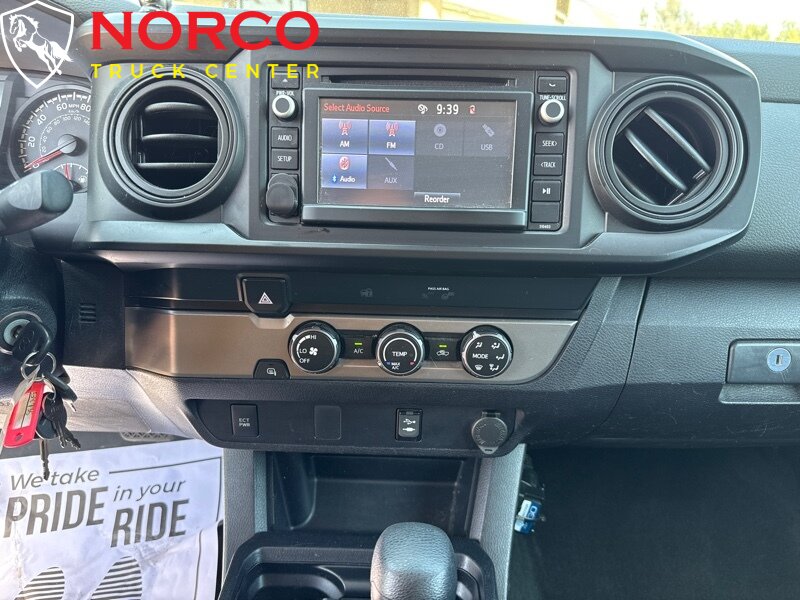 INSTALLED FEATURES: Air filtration, Front air conditioning, Front air conditioning zones: single, Airbag deactivation: occupant sensing passenger, Front airbags: dual, Knee airbags: dual front, Side airbags: front, Side curtain airbags: front / rear, Antenna type: mast, Auxiliary audio input: Bluetooth / USB / iPod/iPhone / jack, In-Dash CD: single disc, Radio: AM/FM / touch screen display / voice operated, Radio data system, Speed sensitive volume control, Total speakers: 6, ABS: 4-wheel, Braking assist, Electronic brakeforce distribution, Front brake diameter: 10.8, Front brake type: ventilated disc, Power brakes, Rear brake diameter: 10.0, Rear brake type: drum, Floor material: carpet, Shift knob trim: urethane, Steering wheel trim: urethane, Adaptive cruise control, Assist handle: front / rear, Center console: front console with armrest and storage, Cupholders: front / rear, One-touch windows: 1, Overhead console: front, Power outlet(s): 12V front, Power steering: variable/speed-proportional, Power windows: lockout button, Reading lights: front / rear, Rearview mirror: manual day/night, Steering wheel: tilt and telescopic, Steering wheel mounted controls: audio / cruise control / multi-function / phone / voice control, Storage: door pockets / front seatback / sunglasses holder / under rear seats, Sun visors, Axle ratio: 4.30, Battery: maintenance-free, Battery saver, Bumper detail: rear step, Door handle color: body-color, Exhaust tip color: stainless steel, Front bumper color: body-color, Grille color: black / black surround, Mirror color: body-color, Rear bumper color: body-color, Side door type: dual rear-hinged access, Skid plate(s): front, Tailgate: removable, Window trim: black, Infotainment: Entune, Infotainment screen size: 6.1 in., Clock, Digital odometer, External temperature display, Fuel economy display: MPG / range, Gauge: tachometer, Instrument cluster screen size: 4.2 in., Multi-function display, Trip odometer, Warnings and reminders: coolant temperature warning / lamp failure / low fuel level / low oil pressure / maintenance due, Daytime running lights, Headlights: auto delay off / auto high beam dimmer / halogen, Side mirror adjustments: manual folding / power, Side mirrors: heated, Active head restraints: dual front, Automatic emergency braking: front / front pedestrian, Camera system: rearview, Child seat anchors: LATCH system, Impact sensor: fuel cut-off, Lane deviation sensors, Pre-collision warning system: audible warning / pedestrian detection / visual warning, Rearview monitor: in dash, Safety brake pedal system, Emergency locking retractors: front / rear, Front seatbelts: 3-point, Rear seatbelts: 3-point, Seatbelt force limiters: front, Seatbelt pretensioners: front, Seatbelt warning sensor: front, Driver seat manual adjustments: lumbar / reclining / 4, Front headrests: adjustable / 2, Front seat type: bucket, Passenger seat manual adjustments: reclining / 4, Rear headrests: foldable / 2, Rear seat folding: folds up, Rear seat type: jumpseats, Upholstery: cloth, Anti-theft system: vehicle immobilizer, Power door locks: auto-locking, Hill holder control, Stability control, Traction control, Steering ratio: 17.4, Turns lock-to-lock: 3.40, Front shock type: gas, Front spring type: coil, Front stabilizer bar: diameter 30 mm, Front struts, Front suspension classification: independent, Front suspension type: double wishbone, Rear shock type: gas, Rear spring type: leaf, Rear stabilizer bar, Rear suspension classification: solid live axle, Rear suspension type: multi-leaf, Electronic messaging assistance: voice operated / with read function, Hands-free phone call integration: voice operated, Wireless data link: Bluetooth, Spare tire mount location: underbody, Spare tire size: full-size, Spare wheel type: steel, Tire Pressure Monitoring System, Tire type: all season, Wheels: steel, Pickup bed cargo management: tie-down anchors, Front wipers: intermittent, Pickup sliding rear window: manual, Power windows, Rear privacy glass