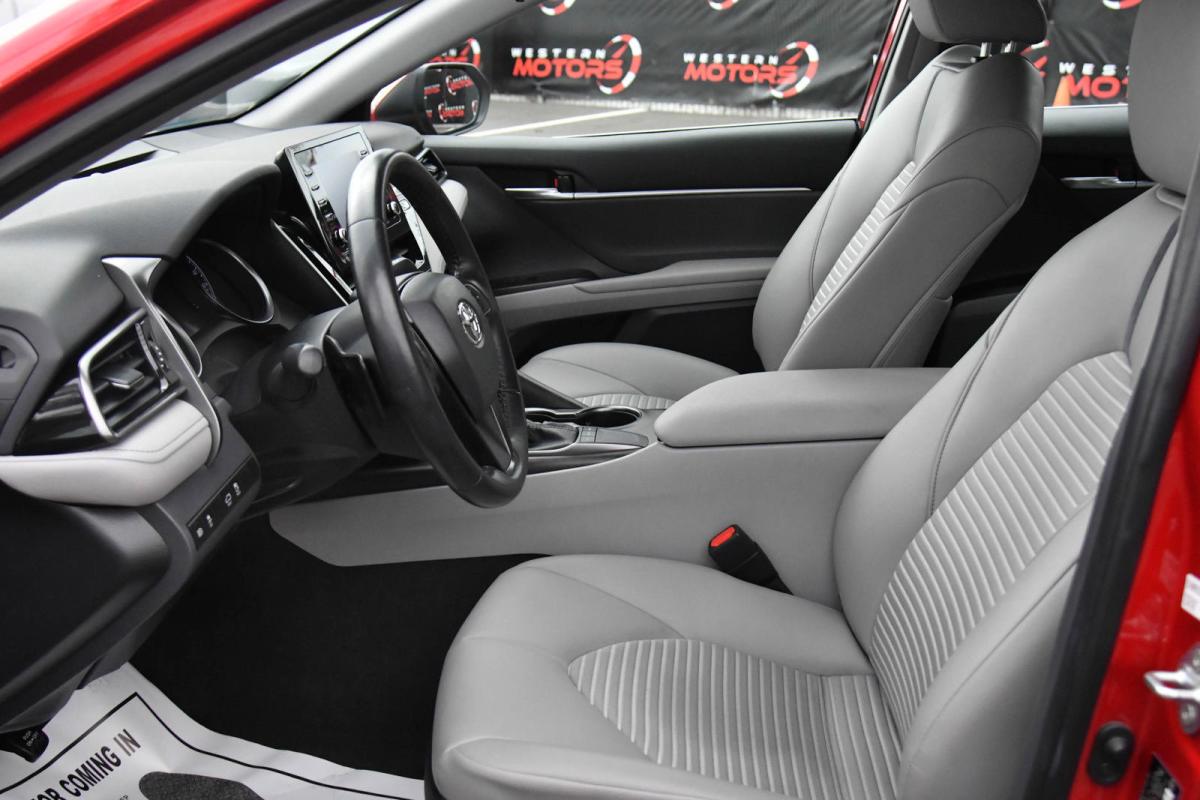 Delivers 39 Highway MPG and 28 City MPG! This Toyota Camry boasts a Regular Unleaded I-4 2.5 L/152 engine powering this Automatic transmission. Variable Intermittent Wipers, Urethane Gear Shifter Material, Trunk Rear Cargo Access.*This Toyota Camry Comes Equipped with These Options *Trip Computer, Transmission: 8-Speed Direct Shift ECT-i Automatic -inc: sequential shift mode and paddle shifters, Toyota Safety Sense (TSS) 2.5+, Tires: 235/45R18 AS, Tire Pressure Monitor System (TPMS) Tire Specific Low Tire Pressure Warning, Strut Front Suspension w/Coil Springs, Steel Spare Wheel, Single Stainless Steel Exhaust w/Polished Tailpipe Finisher, Side Impact Beams, Seats w/Leatherette Back Material.