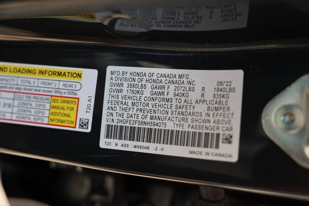 Priced below KBB Fair Purchase Price!Civic Sport, 4D Sedan, 2.0L I4 DOHC 16V i-VTEC, FWD, Black Cloth, 8 Speakers, Adaptive Cruise Control: Adaptive CrControluise (ACC) with Low-Speed Follow, Alloy wheels, Apple CarPlay/Android Auto, Automatic temperature control, Exterior Parking Camera Rear, Forward collision: Collision Mitigation Braking System (CMBS) + FCW mitigation, Fully automatic headlights, Knee airbag, Low tire pressure warning, Remote keyless entry.Clean CARFAX.CARFAX One-Owner.Awards: * NACTOY 2022 North American Car of the Year