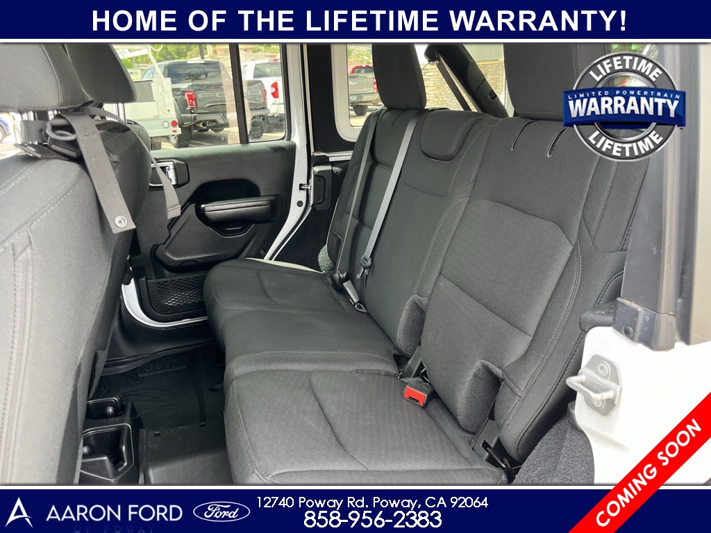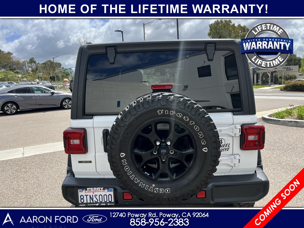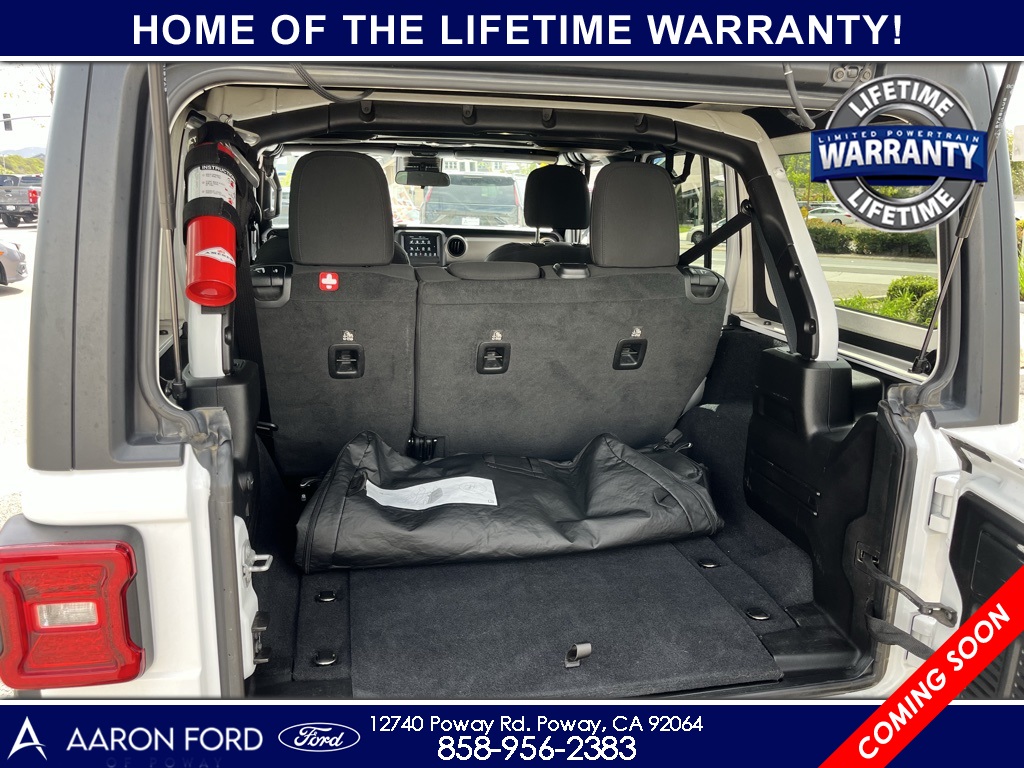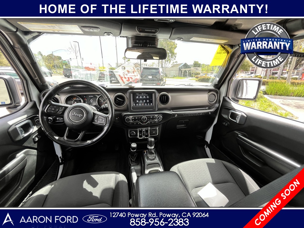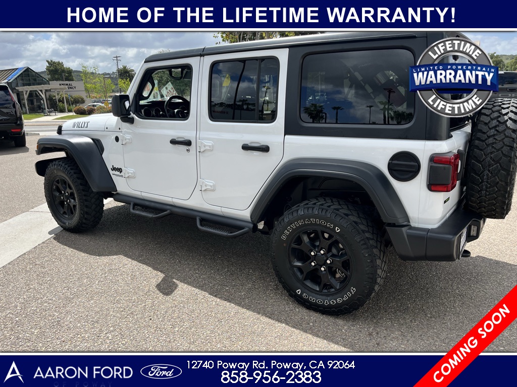 1-Year SiriusXM Radio Service, 4-Wheel Drive Swing Gate Decal, 7.0" Touchscreen Display, Advanced Brake Assist, Advanced Safety Group, Air Conditioning w/Auto Temperature Control, Air Filtering, Anti-Lock 4-Wheel Disc HD Brakes, Anti-Spin Differential Rear Axle, Apple CarPlay, Automatic Headlamps, Black 3-Piece Hard Top, Black Grille, Black Trail Rated Badge, Blind Spot & Cross Path Detection, Bridgestone Brand Tires, Cluster 7.0" TFT Color Display, Cold Weather Group, Convenience Group, Deep Tint Sunscreen Windows, Freedom Panel Storage Bag, Front 1-Touch Down Power Windows, Front LED Fog Lamps, Full Speed Forward Collision Warning Plus, Google Android Auto, GPS Antenna Input, Heated Front Seats, Heated Steering Wheel, Injection Molded Black Rear Bumper, Integrated Center Stack Radio, Leather Wrapped Steering Wheel, LED Headlamp & Fog Lamp Group, LED Reflector Headlamps, LED Taillamps, Matte Black Jeep Badge, MOPAR All-Weather Floor Mats, MOPAR Hardtop Headliner, No Soft Top, ParkSense Rear Park Assist System, ParkView Rear Back-Up Camera, Power Heated Mirrors, Quick Order Package 26W Willys, Radio: Uconnect 4 w/7" Display, Rear Window Defroster, Rear Window Wiper/Washer, Remote Keyless Entry, Safety Group, Security Alarm, SiriusXM Satellite Radio, Speed Sensitive Power Locks, Sun Visors w/Illuminated Vanity Mirrors, Technology Group, Universal Garage Door Opener, USB Host Flip, Wheels: 17" x 7.5" Moab Black Aluminum, Willys, Willys Hood Decal, Wrangler Decal.22/29 City/Highway MPGCARFAX One-Owner.To see more quality vehicles like this one right just click on AaronFordofPoway.com or dial (858) 748-1400.