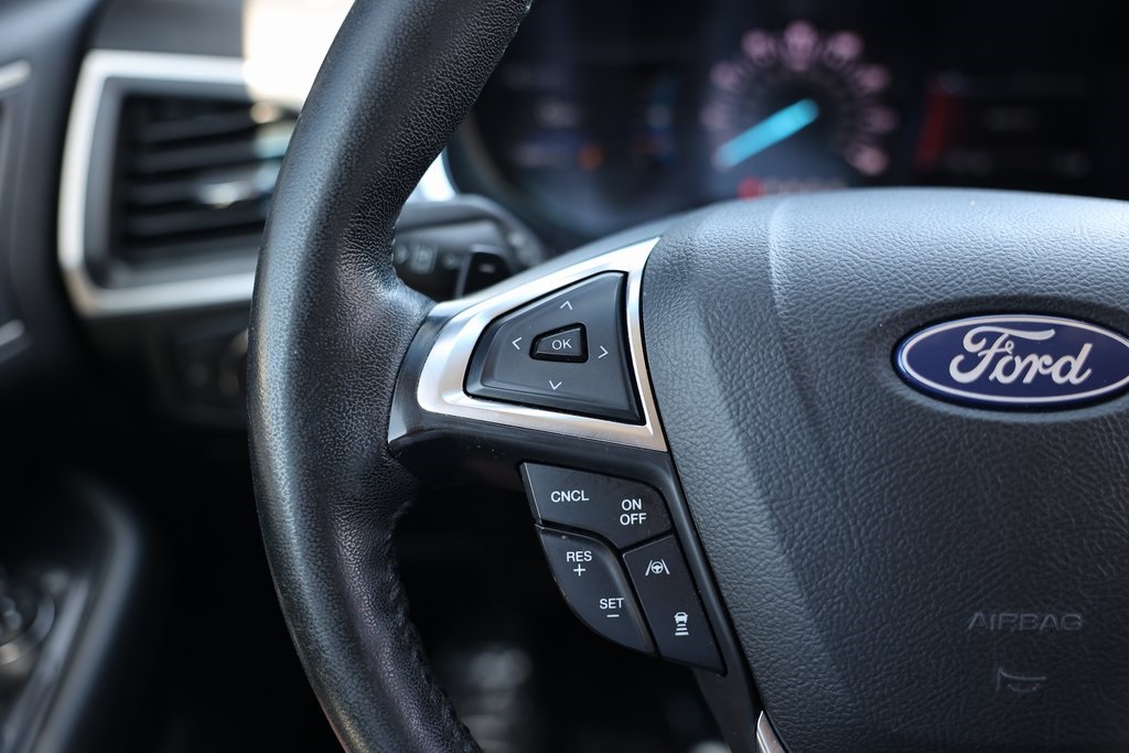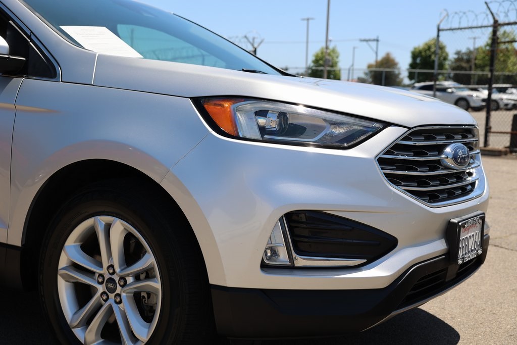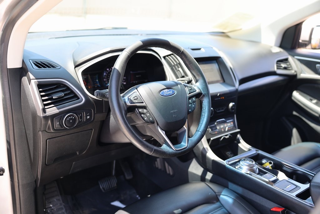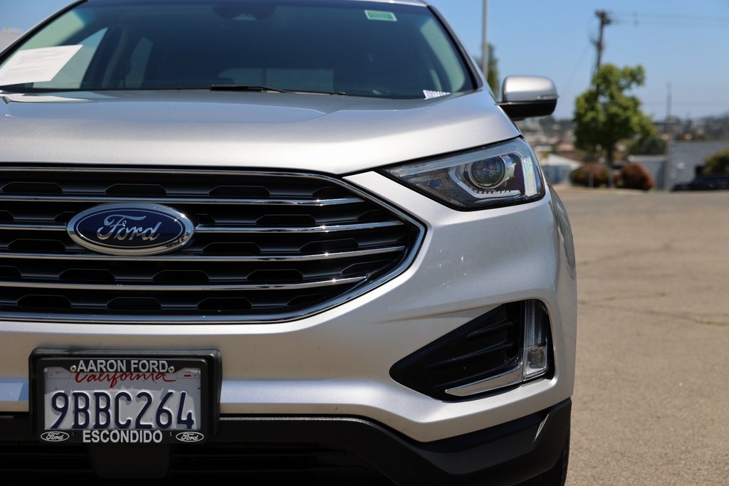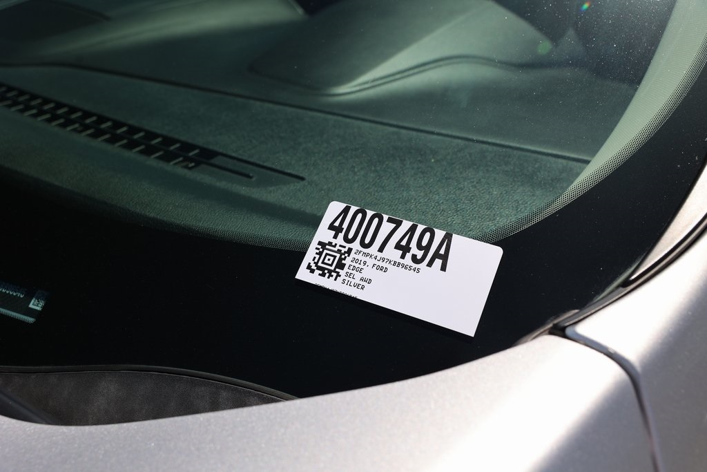 Ingot Silver Metallic 2019 Ford Edge SEL AWD 8-Speed Automatic EcoBoost 2.0L I4 GTDi DOHC Turbocharged VCT AWD, 110V/150W AC Power Outlet, 2 Driver Configurable 4.2" Color LCD Displays, ActiveX Seating Material Heated Bucket Seats, Adaptive Cruise Control w/Stop & Go, Air Conditioning, AppLink/Apple CarPlay and Android Auto, Convenience Package, Equipment Group 201A, Evasive Steering Assist, Foot-Activated Hands-Free Liftgate, Ford Co-Pilot360 Assist+, Fully automatic headlights, Lane Centering, LED Signature Daytime Running Lamps, Perimeter Alarm, Premium 9 Speaker Audio System, Rear Parking Sensors, Remote Start System, SiriusXM Traffic & Travel Link, SYNC 3 Communications & Entertainment System, Universal Garage Door Opener (UGDO), Voice-Activated Touchscreen Navigation System, Wheels: 18" Sparkle Silver-Painted Aluminum, Wireless Charging Pad.Recent Arrival! 21/28 City/Highway MPG