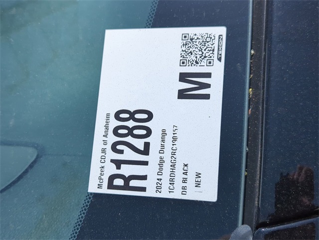 DB Black Crystal Clearcoat 2024 Dodge Durango SXT RWD 8-Speed Automatic 3.6L V6 24V VVT INTERIOR & EXTERIOR PROFESSIONALLY DETAILED FOR DELIVERY, MCPEEK CHRYSLER DODGE JEEP RAM FAMILY OWNED AND OPERATED SINCE 1961 !!!!!.All prices are subject to change without notice. All vehicles subject to prior sale. Advertised price does not include Dealer Installed Accessories or Commercial Bed/Body Upfits. Please contact dealer to receive the most up to date pricing information and complete details. 19/26 City/Highway MPGReceive Free lube and oil filter changes for up to 45,000 miles for 3 years!!! McPeek's Dodge of Anahiem 1221 S. Auto Center Drive Anahiem, CA 92806 714-262-4902. Price includes: $1000 - 2024 National Engine Bonus Cash. Exp. 10/31/2024 $2930 - 2024 National Power Dollars Retail Bonus Cash . Exp. 10/31/2024