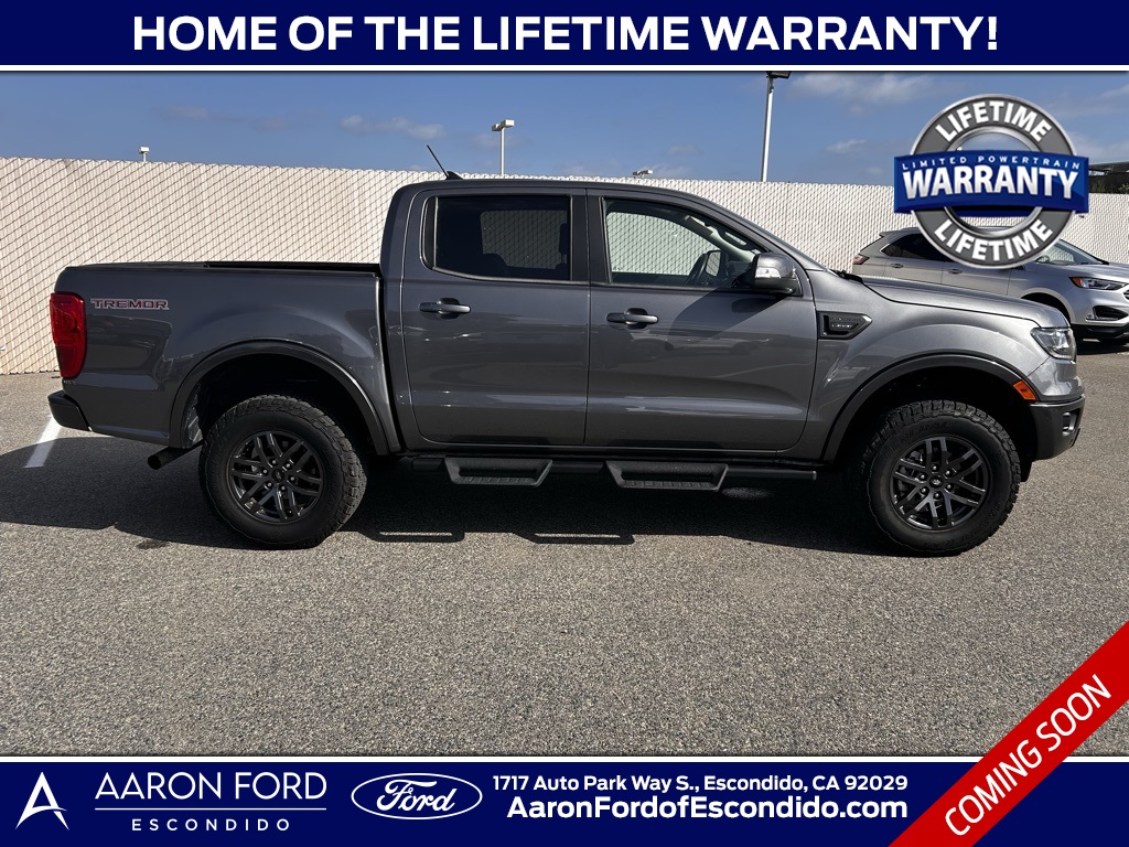 Carbonized Gray Metallic 2021 Ford Ranger Lariat 4WD 10-Speed Automatic EcoBoost 2.3L I4 GTDi DOHC Turbocharged VCT 4WD, Adaptive Cruise Control, Air Conditioning, Black Interior Accents, Black Off-Road Hoop Steps, Black Two Bar Style Grille, Class IV Trailer Hitch Receiver, Electronic-Locking Rear Differential, Equipment Group 501A High, Exterior Parking Camera Rear, Forward Sensing System, Fr Lthr-Trimmed Bucket Seats w/Miko Suede Inserts, Fully automatic headlights, Magnetic Front & Rear Bumper, Magnetic Wheel Arch Flare, Navigation, Off-Road Screen in Cluster, Off-Road Tuned Suspension w/FOX Dampers, Radio: B&O Sound System by Bang & Olufsen, Rain-Sensing Wipers, Rear Tow Hooks, Remote Start, SYNC 3, SYNC 3/Apple CarPlay/Android Auto, Technology Package, Terrain Management System, Tough Bed Spray-In Bedliner, Trail Control, Trailer Tow Package, Tray Style Floor Liner w/Carpet Floor Mats, Tremor Box Decal, Tremor Off-Road Package, Upfitter Switches (6), Wheels: 17" Magnetic Painted Aluminum.Recent Arrival!