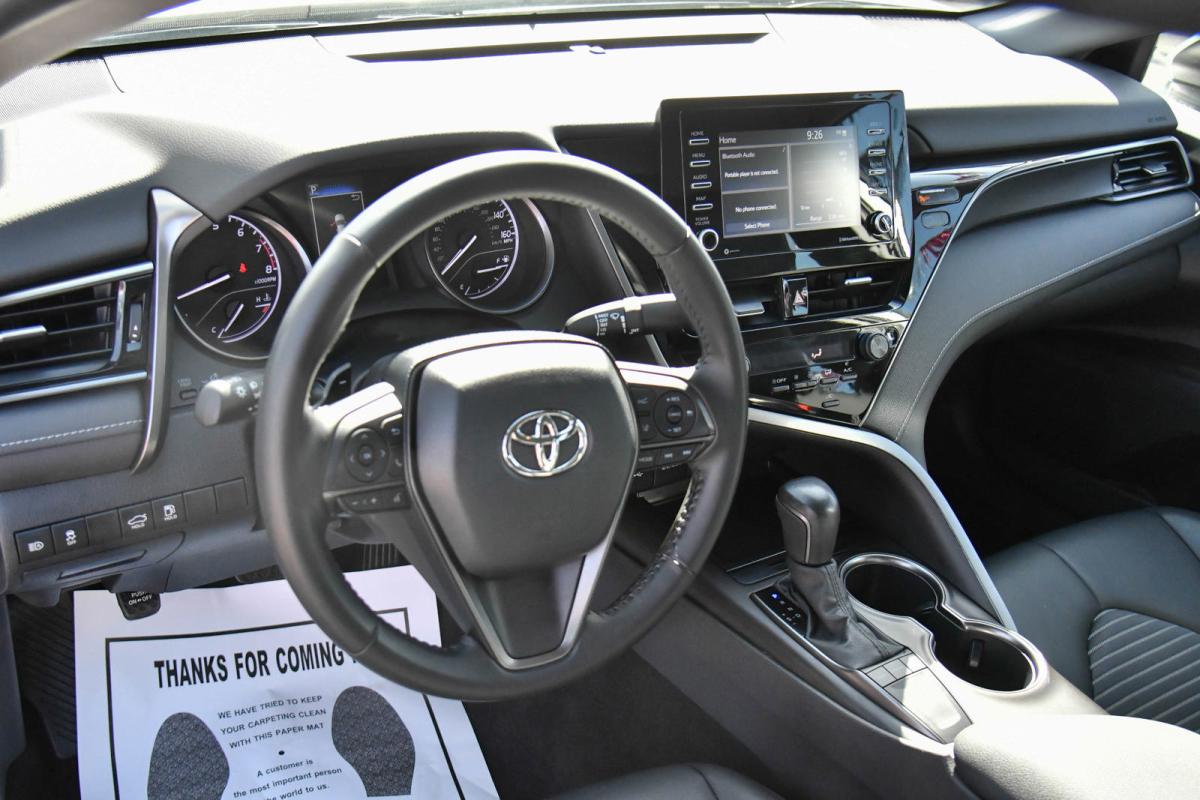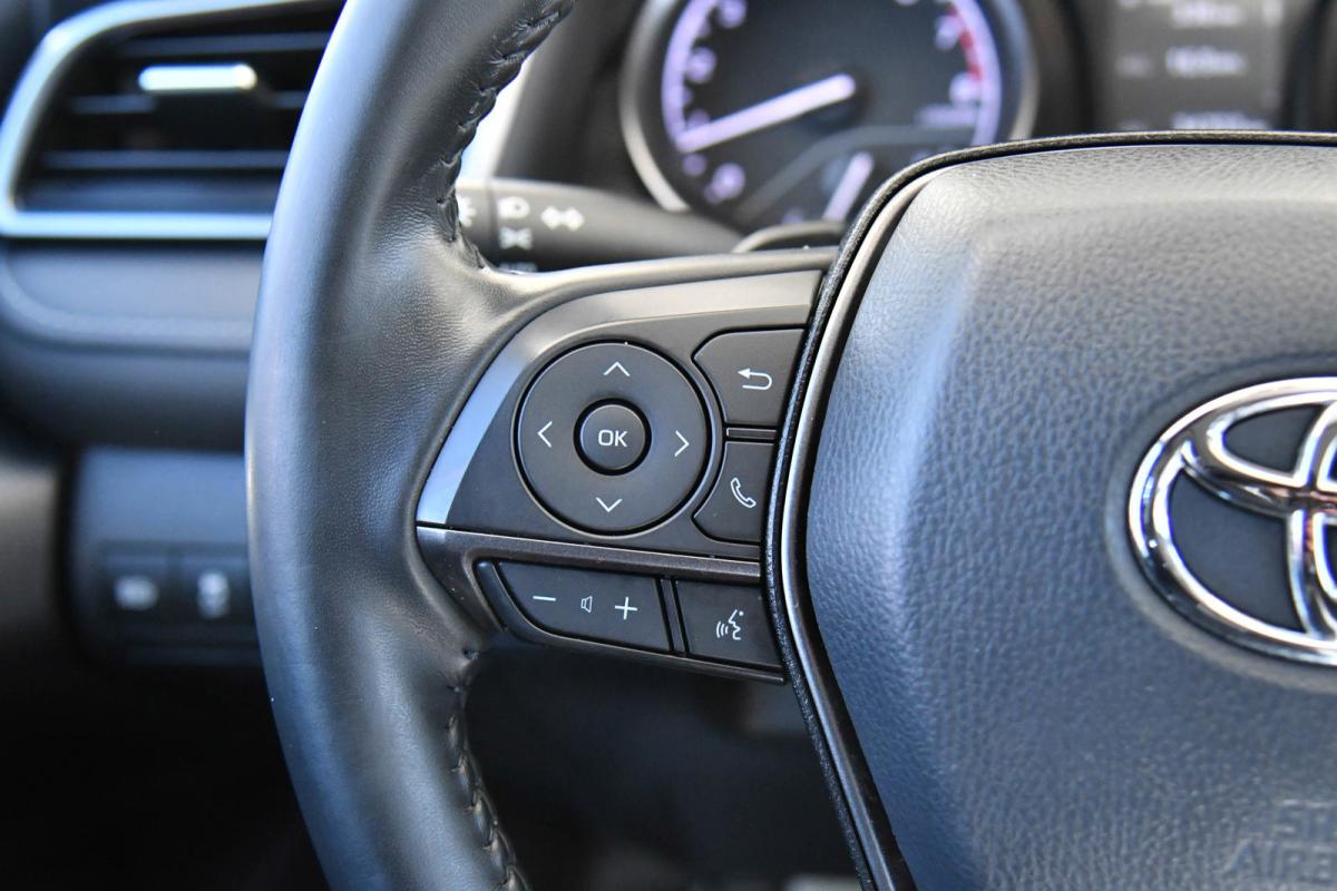 Delivers 39 Highway MPG and 28 City MPG! This Toyota Camry boasts a Regular Unleaded I-4 2.5 L/152 engine powering this Automatic transmission. Variable Intermittent Wipers, Urethane Gear Shifter Material, Trunk Rear Cargo Access.*This Toyota Camry Comes Equipped with These Options *Trip Computer, Transmission: 8-Speed Direct Shift ECT-i Automatic -inc: sequential shift mode and paddle shifters, Toyota Safety Sense (TSS) 2.5+, Tires: 235/45R18 AS, Tire Pressure Monitor System (TPMS) Tire Specific Low Tire Pressure Warning, Strut Front Suspension w/Coil Springs, Steel Spare Wheel, Single Stainless Steel Exhaust w/Polished Tailpipe Finisher, Side Impact Beams, Seats w/Leatherette Back Material.