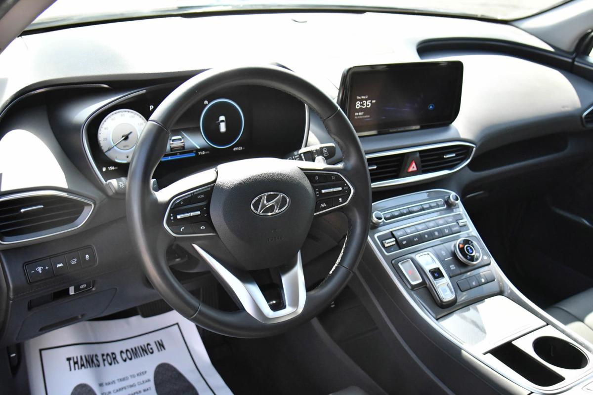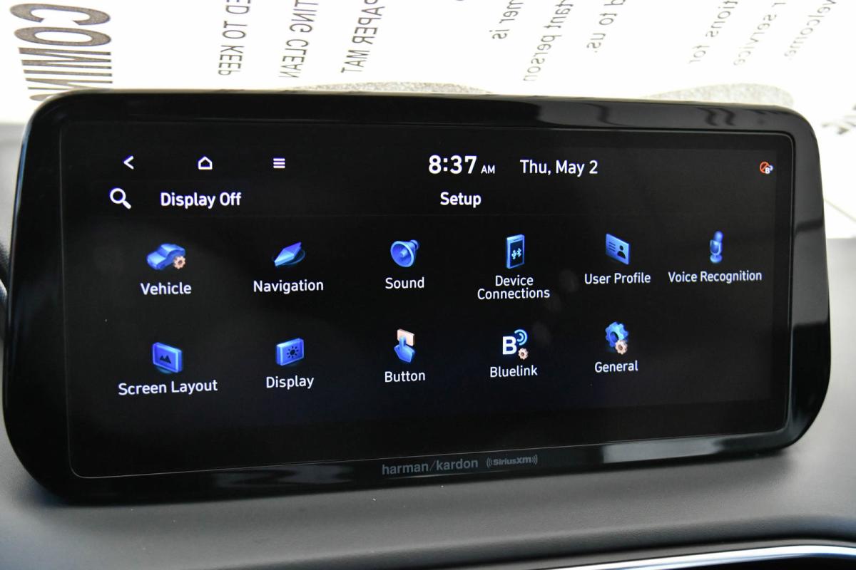 Delivers 25 Highway MPG and 22 City MPG! This Hyundai Santa Fe boasts a Regular Unleaded I-4 2.5 L/152 engine powering this Automatic transmission. STORMY SEA, PREMIUM PACKAGE -inc: Option Group 02, LED Taillights, Harman Kardon Audio System, 12 speakers including subwoofer, external amplifier, Clari-Fi music restoration technology and Quantum Logic surround, 12.3 LCD Multi-Information Display, Power Release 2nd Row Seats, power folding, unfolding and reclining, Manual Rear Side Sunshades, Silver Front Grille, Surround View Monitor, Chrome Interior Accents, chrome lower door garnish accent and chrome front and rear lower skid plate accents, 8-Way Power Passenger Seat, LED Interior Lights, Acoustic-Laminated Front Side Windows, Chrome Front & Rear Bumper Accents, Blind-Spot View Monitor, Auto-Dimming Rearview Mirror, HomeLink, Panoramic Sunroof, GRAY, STAIN-RESISTANT CLOTH SEAT TRIM.*This Hyundai Santa Fe Features the Following Options *Wheels: 18 x 7.5J Alloy, Voice Activated Dual Zone Front Automatic Air Conditioning, Variable Intermittent Wipers, Valet Function, Turn-By-Turn Navigation Directions, Trunk/Hatch Auto-Latch, Trip Computer, Transmission: 8-Speed Automatic w/SHIFTRONIC -inc: shift-by-wire and drive mode select (comfort, sport, smart), Transmission w/Driver Selectable Mode, Towing Equipment -inc: Trailer Sway Control.