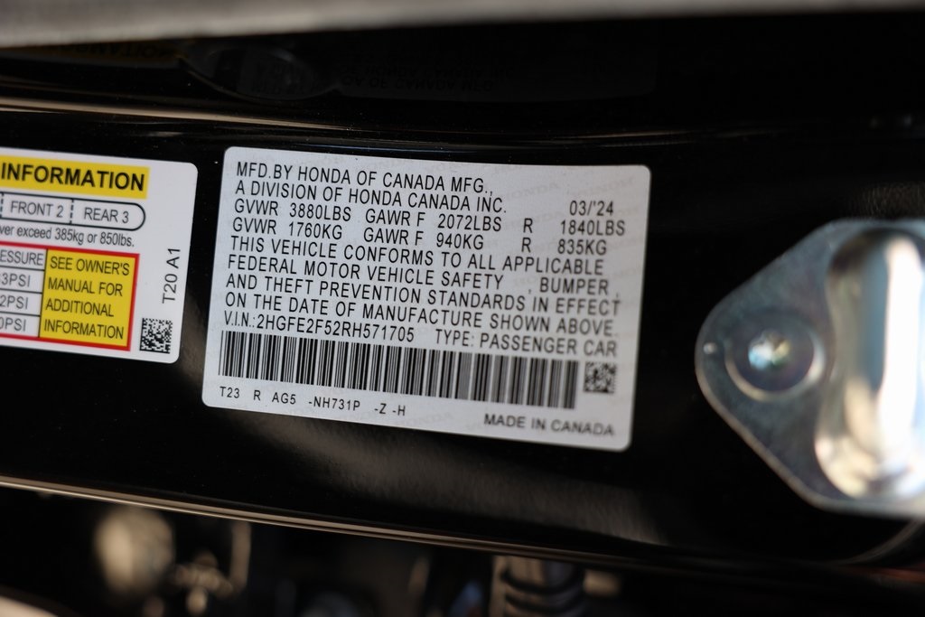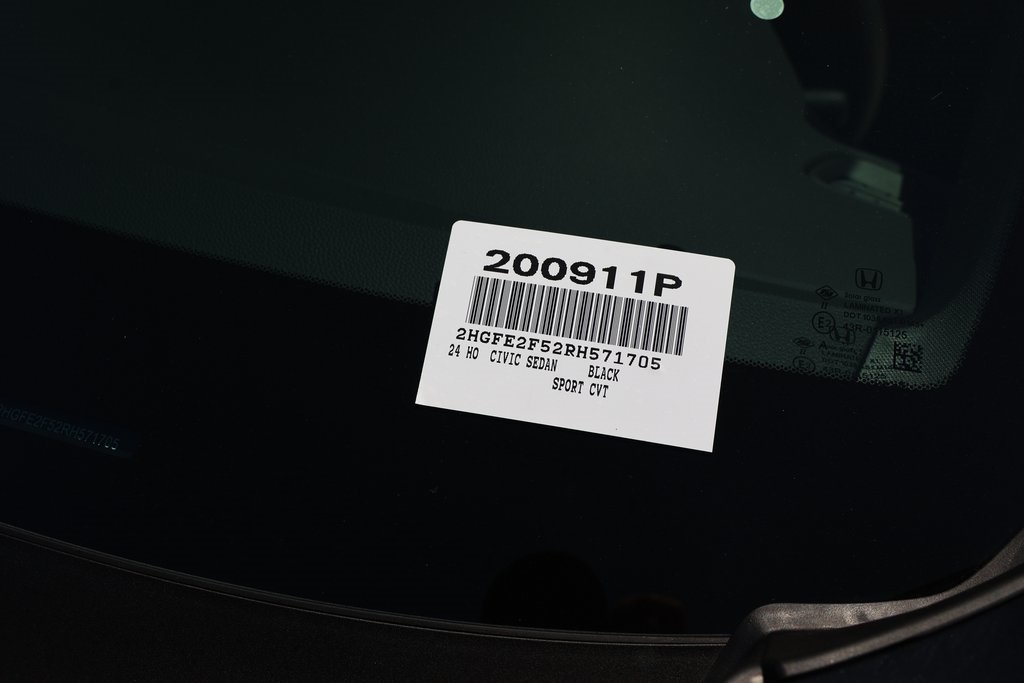 Civic Sport, 4D Sedan, 2.0L I4 DOHC 16V i-VTEC, FWD, Black Artificial Leather, 8 Speakers, Adaptive Cruise Control: Adaptive CrControluise (ACC) with Low-Speed Follow, Alloy wheels, Apple CarPlay/Android Auto, Exterior Parking Camera Rear, Fully automatic headlights, Knee airbag, Low tire pressure warning, Remote keyless entry, Wheels: 18" Gloss Black Alloy.Clean CARFAX.