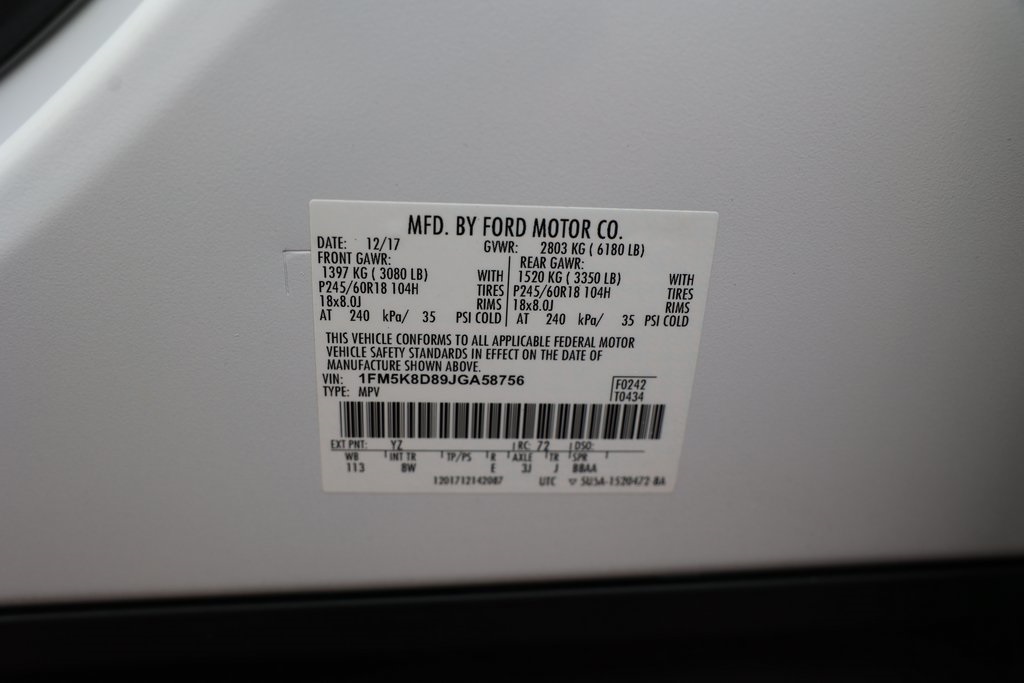 Priced below KBB Fair Purchase Price!LIFE TIME WARRANTY, Explorer XLT, 4D Sport Utility, 3.5L 6-Cylinder SMPI DOHC, 6-Speed Automatic with Select-Shift, 4WD, 3rd row seats: split-bench, 6 Speakers, Active Cruise Control, Compass, Emergency communication system: 911 Assist, Equipment Group 200A, Exterior Parking Camera Rear, Knee airbag, Low tire pressure warning, Rear Parking Sensors, Remote keyless entry, Security system, SYNC Communication & Entertainment System, Wheels: 18" 5-Split-Spoke Sparkle Silver-Painted.CARFAX One-Owner.Awards: * 2018 KBB.com Brand Image Awards * 2018 KBB.com 10 Most Awarded Brands
