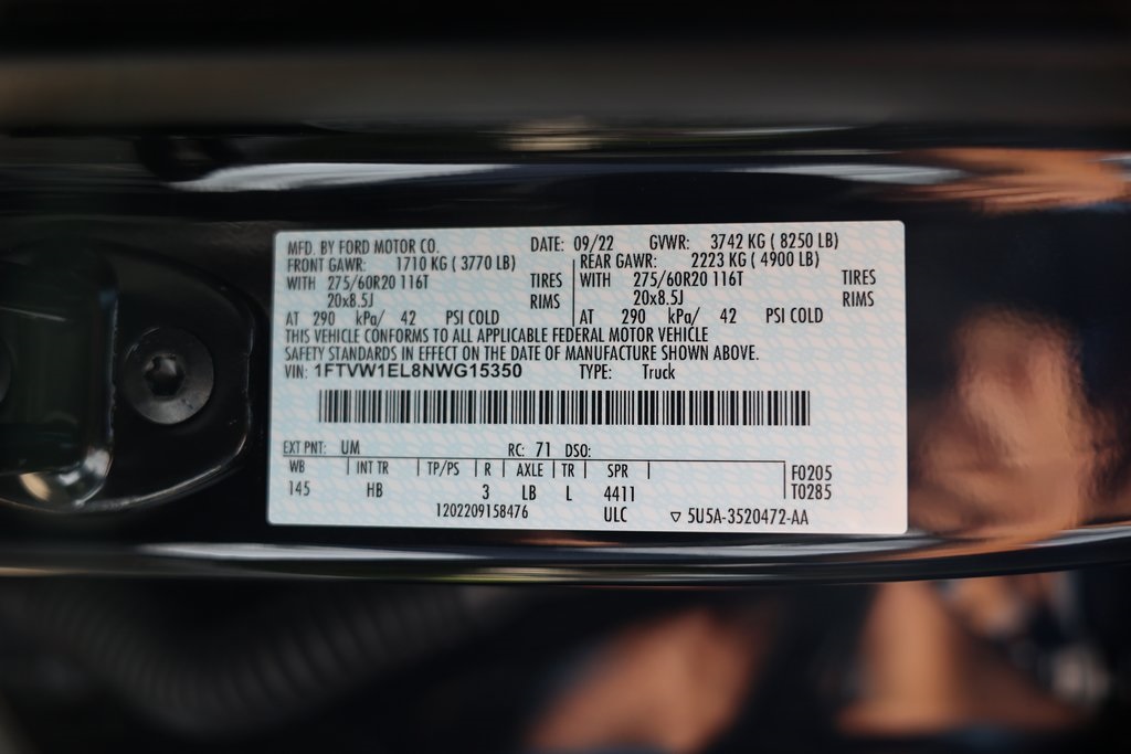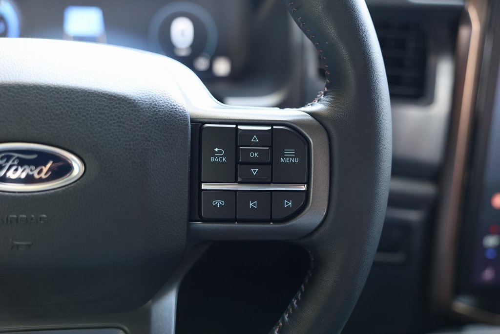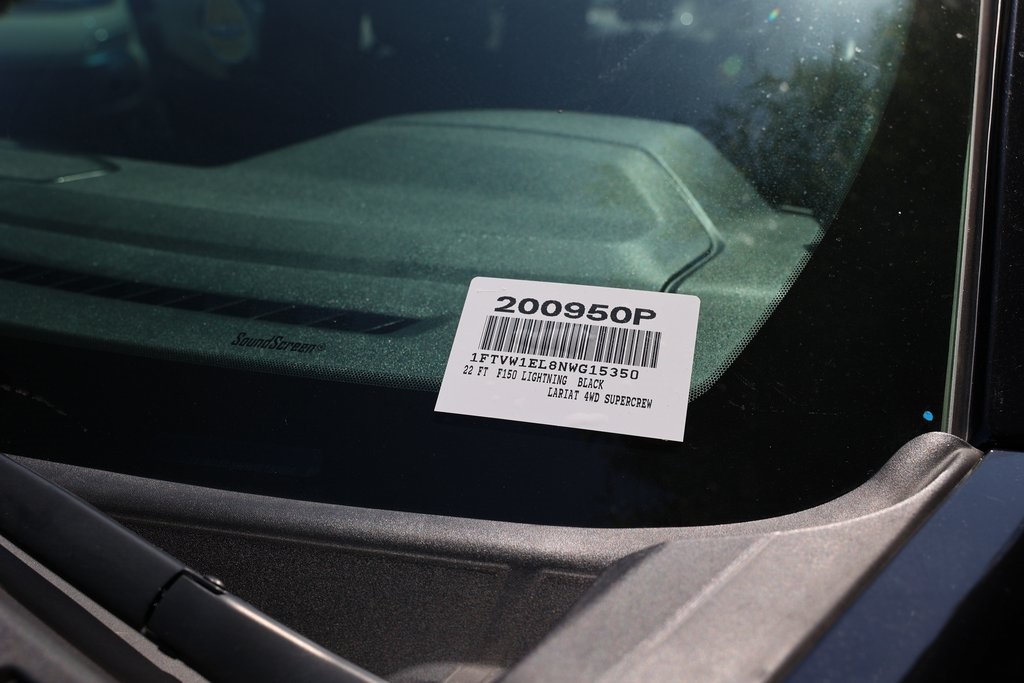 F-150 Lightning Lariat, 4D Crew Cab, Electric Motor, Single-Speed Automatic, AWD, ABS brakes, Active Cruise Control, Active Park Assist 2.0, Alloy wheels, BlueCruise, Compass, Electronic Stability Control, Equipment Group 510A Standard, Ford Co-Pilot360 Active 2.0, Forward Sensing System, Front dual zone A/C, Heated door mirrors, Heated front seats, Illuminated entry, Leather-Trimmed Heated & Ventilated Seats, Low tire pressure warning, Memory seat, Navigation System, Navigation system: Connected Navigation (3-year trial), Pedal memory, Radio: B&O Sound System by Bang & Olufsen, Remote keyless entry, SYNC 4A w/Enhanced Voice Recognition, Tough Bed Spray-In Bedliner, Traction control, Ventilated front seats.CARFAX One-Owner.