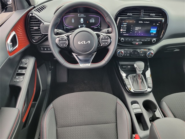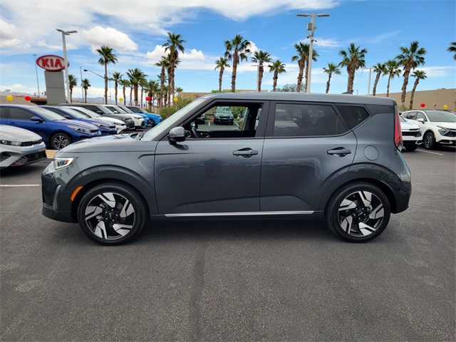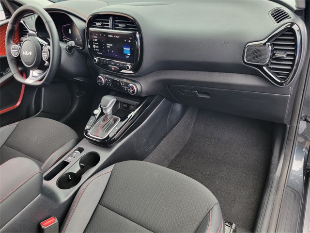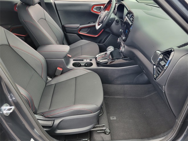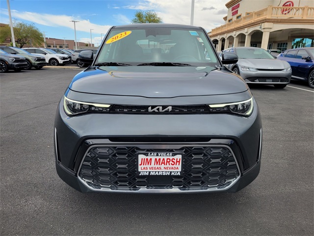 Odometer is 10897 miles below market average!28/33 City/Highway MPGGrey 2023 Kia Soul GT-Line FWD IVT 2.0L I4 DOHCIf you don't drive here, you can't save here!Price may not include recon fee. GT-Line Technology Package (10-Way Power Driver's Seat w/Lumbar Support, Cargo Cover, Dual Level Cargo Board, Electronic Parking Brake, Forward Collision Avoidance-Assist - Cyclist, harman/kardon Premium Audio, Heated Front Seats, Intelligent Speed Limit Assist (ISLA), LED Fog Lights, LED Headlights, Positioning Lights & Tail Lights, Navigation-Based Smart Cruise Control (NSCC-C), and Speaker Lights), 18" Alloy Wheels, 4-Wheel Disc Brakes, 6 Speakers, ABS brakes, Air Conditioning, Alloy wheels, AM/FM radio: SiriusXM, Apple CarPlay & Android Auto, Auto High-beam Headlights, Automatic temperature control, Brake assist, Bumpers: body-color, Carpeted Floor Mats, Combination Cloth/Artificial Leather Seat Trim, Compass, Delay-off headlights, Driver door bin, Driver vanity mirror, Dual front impact airbags, Dual front side impact airbags, Electronic Stability Control, Emergency communication system, Exterior Parking Camera Rear, Front anti-roll bar, Front Bucket Seats, Front Center Armrest, Front dual zone A/C, Front reading lights, Front wheel independent suspension, Fully automatic headlights, Heated door mirrors, Illuminated entry, Leather Shift Knob, Leather steering wheel, Low tire pressure warning, Navigation System, Occupant sensing airbag, Outside temperature display, Overhead airbag, Overhead console, Panic alarm, Passenger door bin, Passenger vanity mirror, Power door mirrors, Power moonroof, Power steering, Power windows, Radio data system, Radio: AM/FM/MP3/HD Audio System, Rear seat center armrest, Rear window defroster, Rear window wiper, Remote keyless entry, Speed control, Speed-sensing steering, Split folding rear seat, Sport steering wheel, Steering wheel mounted audio controls, Tachometer, Telescoping steering wheel, Tilt steering wheel, Traction control, Trip computer, Turn signal indicator mirrors, and Variably intermittent wipers.