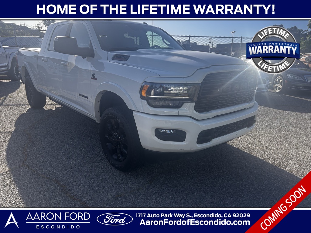 Pearl White 2021 Ram 2500 Limited 4WD 6-Speed Automatic Cummins 6.7L I6 Turbodiesel 12" Touchscreen Display, 17 Speaker harman kardon Premium Sound, 1-Year SiriusXM Guardian Trial, 4G LTE Wi-Fi Hot Spot, 5th Wheel/Gooseneck Towing Prep Group, Adaptive Cruise Control w/Stop, Adaptive Steering System, Air Suspension Decal, Apple CarPlay, Auto Level Rear Air Suspension, Black Exterior Mirrors, Black Exterior Truck Badging, Black Headlamp Bezels, Black Limited Grille, Black RAM Head Tailgate Badge, Black Tail Lamp Bezels, Body Color Door Handles, Body Color Grille Surround, Center Stop Lamp w/Cargo View Camera, Dash Pass Thru Wire Circuits, Digital Rearview Mirror, Disassociated Touchscreen Display, Dual Alternators Rated At 440 Amps, Full Speed Forward Collision Warning Plus, Fully automatic headlights, Google Android Auto, GPS Antenna Input, GPS Navigation, HD Radio, Heated front seats, Heated rear seats, I/P Mounted Auxiliary Switches, Integrated Voice Command w/Bluetooth, Lane Keep Assist, Limited Level 1 Equipment Group, Memory seat, MOPAR Trailer Camera Wiring w/No Camera, Navigation System, Night Edition, Painted Front Bumper, Painted Rear Bumper, ParkView Rear Back-Up Camera, Pickup Box, Power Sunroof, Protection Group, Pwr Convenience Black Tow Mirrors w/Spotter & Memory, Quick Order Package 2HM Limited, Radio: Uconnect 12 w/Navigation, Selectable Tire Fill Alert, SiriusXM Satellite Radio, SiriusXM Traffic Plus, SiriusXM Travel Link, SiriusXM w/360L, Surround View Camera System, Tow Hooks, Trailer Reverse Guidance, Ventilated front seats, Wheels: 20" x 8.0" Cast Aluminum Black.Recent Arrival!Awards: * JD Power Initial Quality Study (IQS)