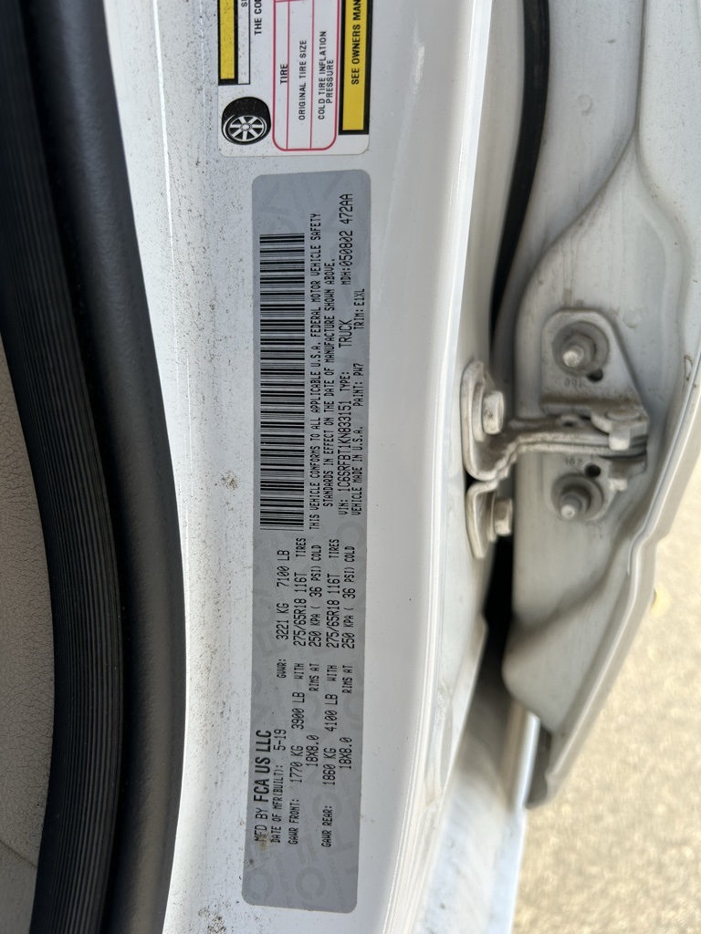 1500 Big Horn/Lone Star, 4D Quad Cab, HEMI 5.7L V8 Multi Displacement VVT, 8-Speed Automatic, 4WD, Add Class IV Receiver Hitch, Alloy wheels, Auto-Dimming Rear-View Mirror, Big Horn IP Badge, Big Horn Level 1 Equipment Group, Class IV Receiver Hitch, Cluster 3.5" TFT Color Display, Exterior Mirrors Courtesy Lamps, Exterior Mirrors w/Supplemental Signals, Foam Bottle Insert (Door Trim Panel), Glove Box Lamp, Power 4-Way Driver Lumbar Adjust, Power 8-Way Driver Seat, Power Adjustable Pedals, Power Black Trailer Tow Mirrors, Power Heated Fold Away Mirrors, Radio: Uconnect 4 w/8.4" Display, Rear Dome w/On/Off Switch Lamp, Rear Power Sliding Window, Rear Window Defroster, Single Disc Remote CD Player, SiriusXM Satellite Radio, Sun Visors w/Illuminated Vanity Mirrors, Trailer Brake Control, Trailer Tow Group, Trailer Tow Mirrors, Universal Garage Door Opener.Awards: * Motor Trend Automobiles of the year * 2019 KBB.com 10 Favorite New-for-2019 Cars * 2019 KBB.com 10 Best Road Trip Cars * NACTOY 2019 North American Truck of the Year * 2019 KBB.com Best Auto Tech Awards