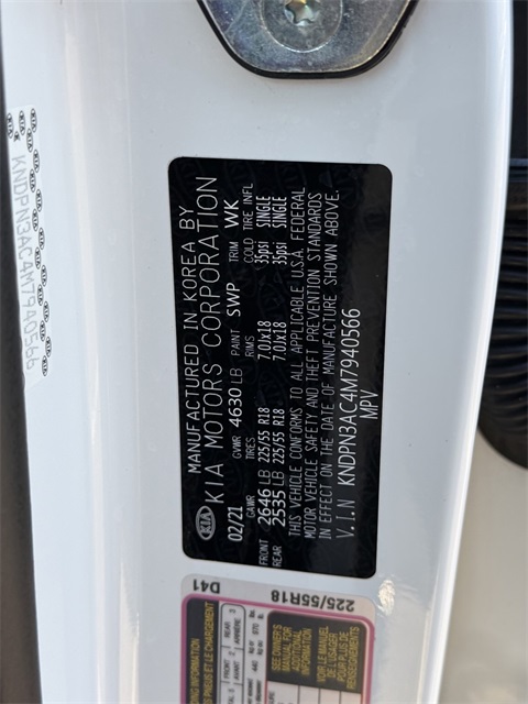 23/30 City/Highway MPGSnow White Pearl 2021 Kia Sportage EX FWD 6-Speed Automatic Electronic with Overdrive 2.4L I4 DGI DOHC 16VIf you don't drive here, you can't save here!Awards: * JD Power Initial Quality Study (IQS)Price may not include recon fee. EX Technology Package (8-Way Power Adjustable Passenger Seat, Auto-Dimming Rear-View Mirror w/Homelink & Compass, Electronic Parking Brake (EPB), Front & Rear Park Assist System, Heated Steering Wheel, Leather Seat Trim, LED Interior Lighting, Panoramic Sunroof, Radio: AM/FM/SiriusXM Audio System, Smart Cruise Control w/Stop & Go, and Ventilated Front Seats), 18" Alloy Wheels, 4-Wheel Disc Brakes, 6 Speakers, ABS brakes, Air Conditioning, Alloy wheels, AM/FM radio, Apple CarPlay & Android Auto, Auto High-beam Headlights, Automatic temperature control, Axle Ratio: 3.064, Brake assist, Bumpers: body-color, Carpet Floor Mats, Delay-off headlights, Driver door bin, Driver vanity mirror, Dual front impact airbags, Dual front side impact airbags, Electronic Stability Control, Exterior Parking Camera Rear, Four wheel independent suspension, Front anti-roll bar, Front Bucket Seats, Front Center Armrest, Front dual zone A/C, Front fog lights, Front reading lights, Fully automatic headlights, Heated door mirrors, Heated Front Bucket Seats, Heated front seats, Illuminated entry, Leather Shift Knob, Leather steering wheel, Leatherette Seat Trim, Low tire pressure warning, Occupant sensing airbag, Outside temperature display, Overhead airbag, Overhead console, Panic alarm, Passenger door bin, Passenger vanity mirror, Power door mirrors, Power driver seat, Power Liftgate, Power steering, Power windows, Radio: AM/FM Audio System, Rear anti-roll bar, Rear seat center armrest, Rear window defroster, Rear window wiper, Remote keyless entry, Roof rack: rails only, Security system, Speed control, Speed-sensing steering, Split folding rear seat, Spoiler, Steering wheel mounted audio controls, Tachometer, Telescoping steering wheel, Tilt steering wheel, Traction control, Trip computer, Turn signal indicator mirrors, and Variably intermittent wipers.