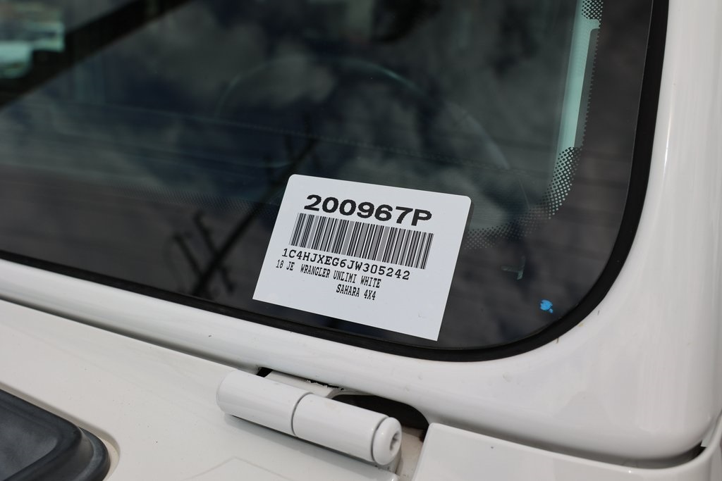 Priced below KBB Fair Purchase Price!Wrangler Unlimited Sahara, 4D Sport Utility, 3.6L V6 24V VVT, 6-Speed Manual, 4WD, 1-Year SiriusXM Guardian Trial, 5-Year SiriusXM Traffic Service, 5-Year SiriusXM Travel Link Service, 8.4" Touchscreen Display, Alloy wheels, Alpine Premium Audio System, Auto-Dimming Rear-View Mirror, Black 3-Piece Hard Top, Compass, Electronic Infotainment System Group, Freedom Panel Storage Bag, Front dual zone A/C, Front fog lights, GPS Navigation, HD Radio, Low tire pressure warning, ParkView Rear Back-Up Camera, Radio: Uconnect 4C Nav w/8.4" Display, Rear Window Defroster, Rear Window Wiper/Washer, Remote keyless entry, Roadside Assistance & 9-1-1 Call, SiriusXM Traffic Plus, SiriusXM Travel Link.Awards: * 2018 KBB.com 10 Most Awarded Brands