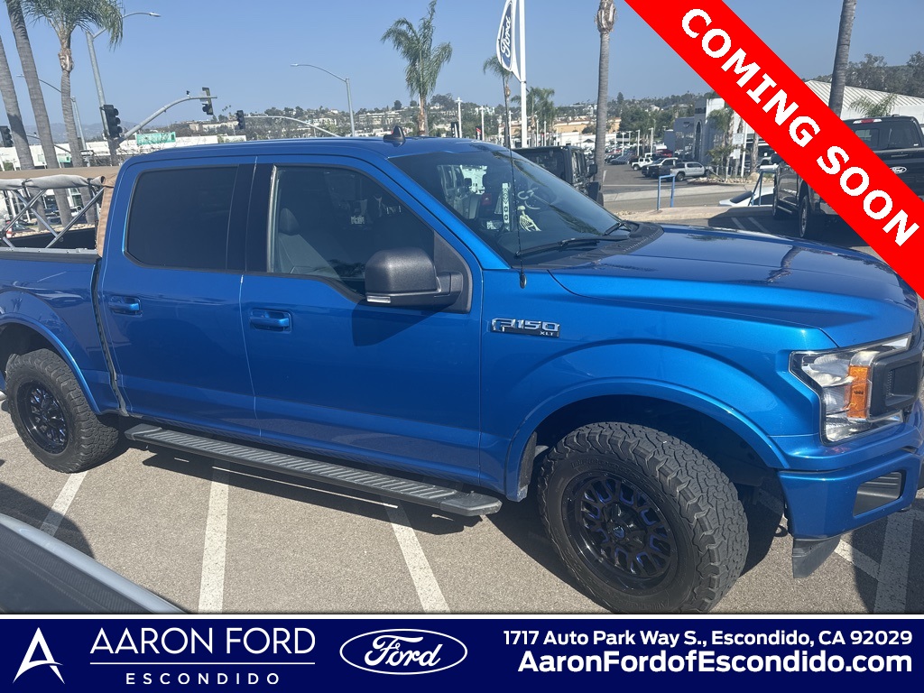 Blue 2019 Ford F-150 XLT 4WD 10-Speed Automatic 2.7L V6 EcoBoost 4WD, 10-Way Power Driver & Passenger Seats, 2-Bar Style Grille w/2 Minor Bars Painted Dark, 2-Bar Style Grille w/Chrome 2 Minor Bars, 3.55 Axle Ratio, 4.2" Productivity Screen in Instrument Cluster, Accent-Color Step Bars, AppLink/Apple CarPlay and Android Auto, Auto-Dimming Rear-View Mirror, Body-Color Door & Tailgate Handles, Body-Color Front & Rear Bumpers, Box Side Decals, Chrome Door & Tailgate Handles w/Body-Color Bezel, Chrome Step Bars, Cloth 40/20/40 Front Seat, Equipment Group 302A Luxury, Exterior Parking Camera Rear, Fixed Backlight w/Privacy Glass, Fully automatic headlights, GVWR: 6,500 lbs Payload Package, Heated Front Seats, Leather-Wrapped Steering Wheel, Navigation System, Power Glass Heated Sideview Mirrors, Power-Adjustable Pedals, Rear Under-Seat Storage, Rear Window Defroster, Remote Start System, Single-Tip Chrome Exhaust, SiriusXM Radio, Wheels: 18" 6-Spoke Machined-Aluminum, XLT Chrome Appearance Package, XLT Sport Appearance Package.Recent Arrival!