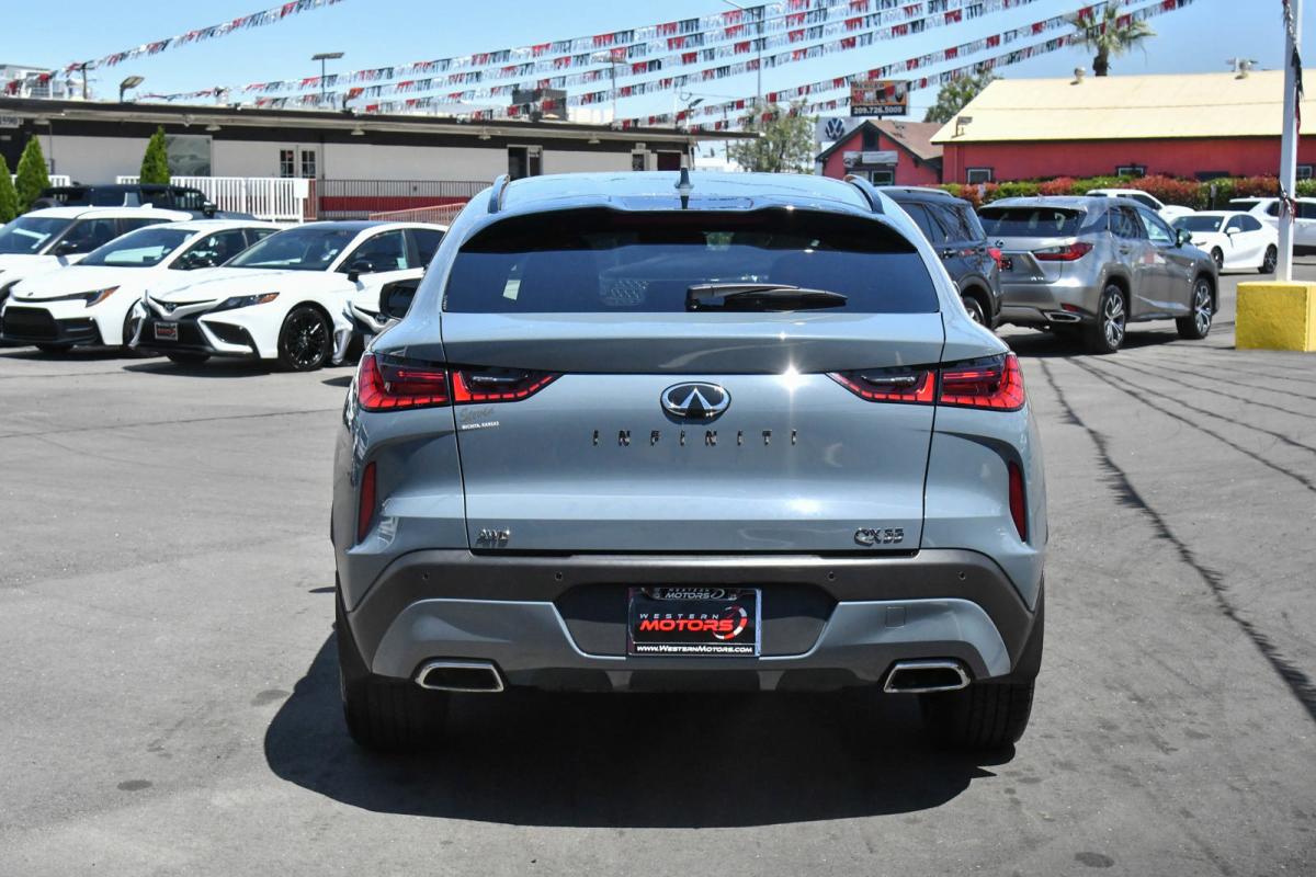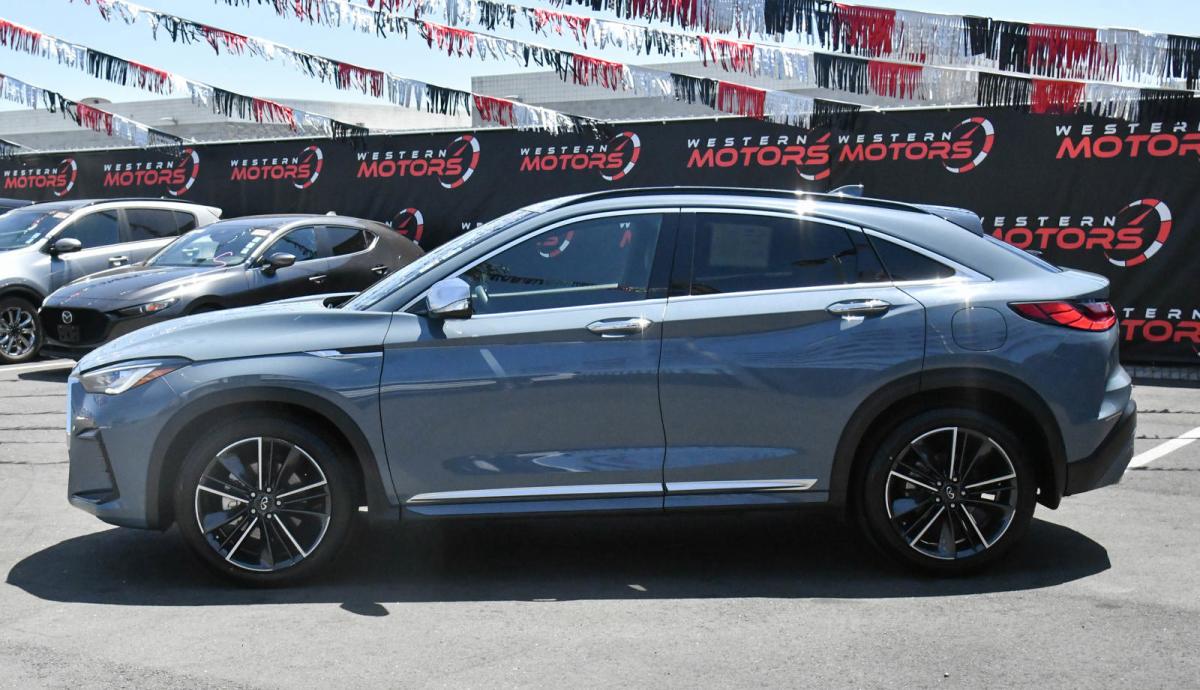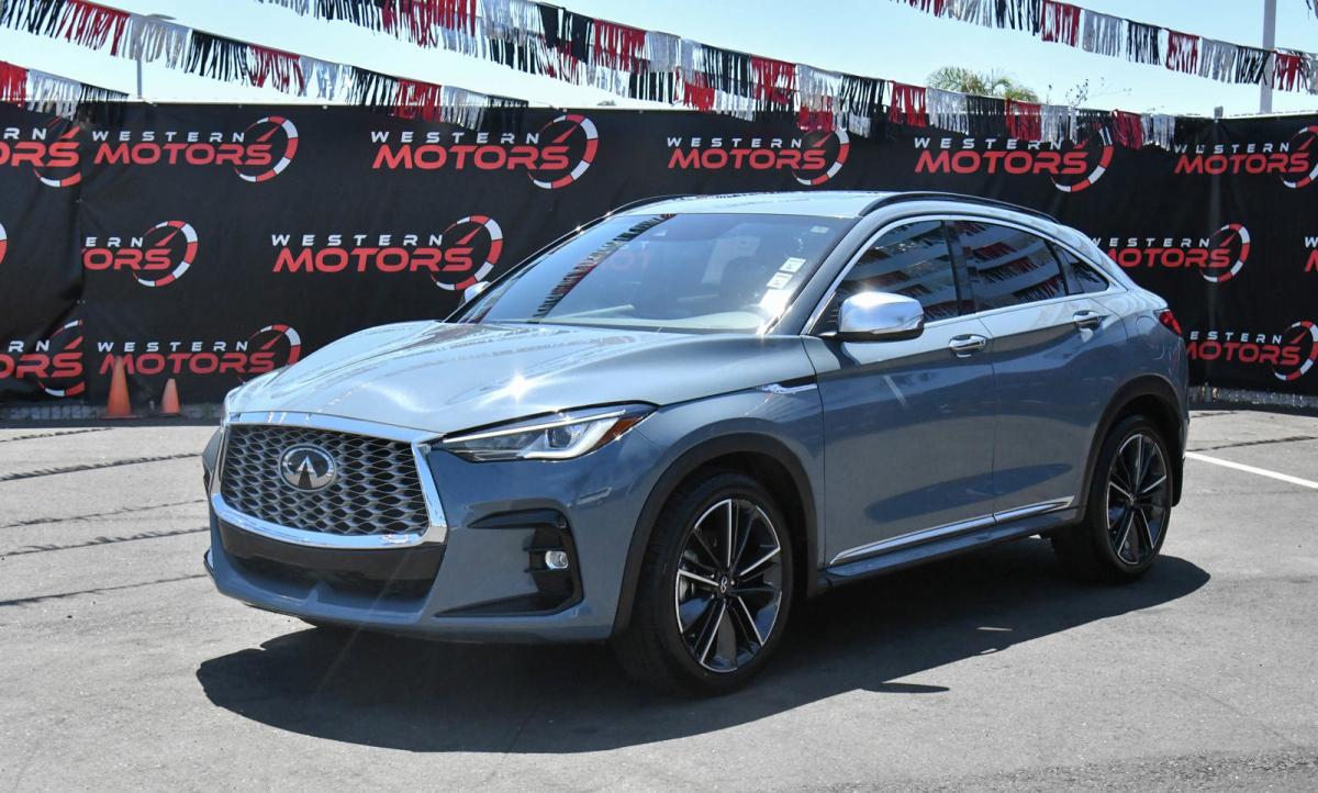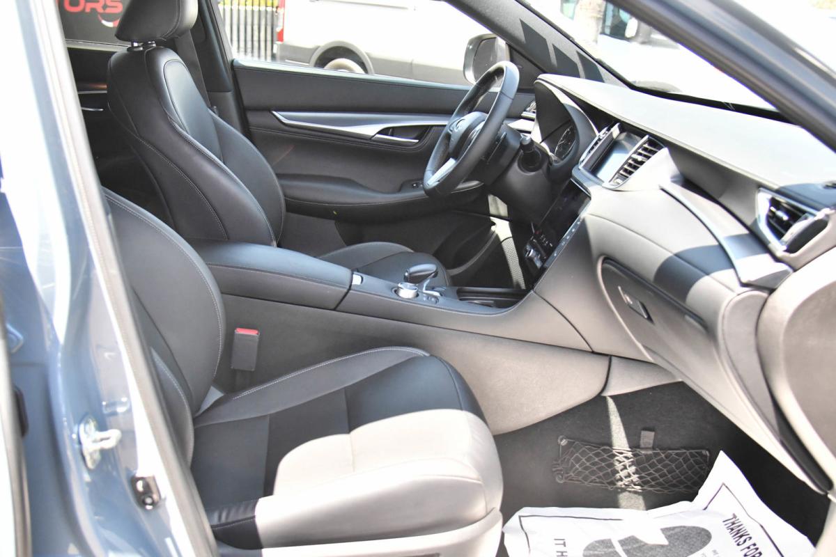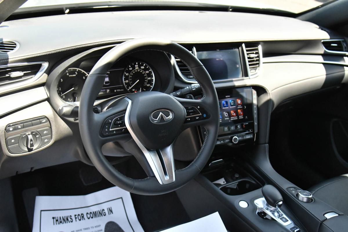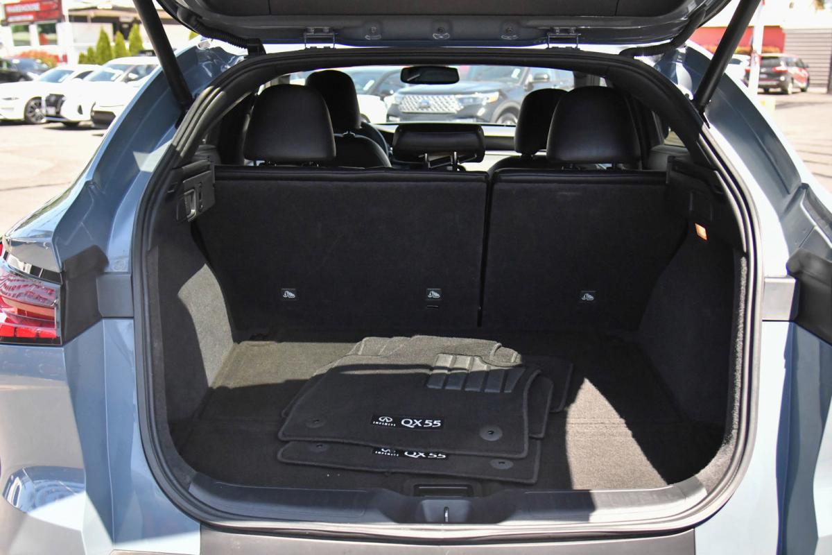 Scores 28 Highway MPG and 22 City MPG! This INFINITI QX55 delivers a Intercooled Turbo Premium Unleaded I-4 2.0 L/122 engine powering this Variable transmission. SLATE GRAY, GRAPHITE, LEATHER-APPOINTED SEAT TRIM, [N94] WELCOME LIGHTING W/LOGO.*This INFINITI QX55 Features the Following Options *[M92] CARGO PACKAGE -inc: cargo blocks and console net, Reversible Cargo Mat, Black Film Rear Bumper Protector, Cargo Net, [B93] ACCENT PACKAGE -inc: Matte Chrome Mirror Caps, Matte Chrome Bodyside Molding , [L11] CARPETED FLOOR MATS, [E10] PREMIUM PAINT, [B92] BLACK SPLASH GUARDS (SET OF 4), Wheels: 20 x 8.5 Machine Finished Aluminum Alloy -inc: Dark painted, Valet Function, Trunk/Hatch Auto-Latch, Trip Computer, Transmission: Continuously Variable (CVT) -inc: paddle shifters.