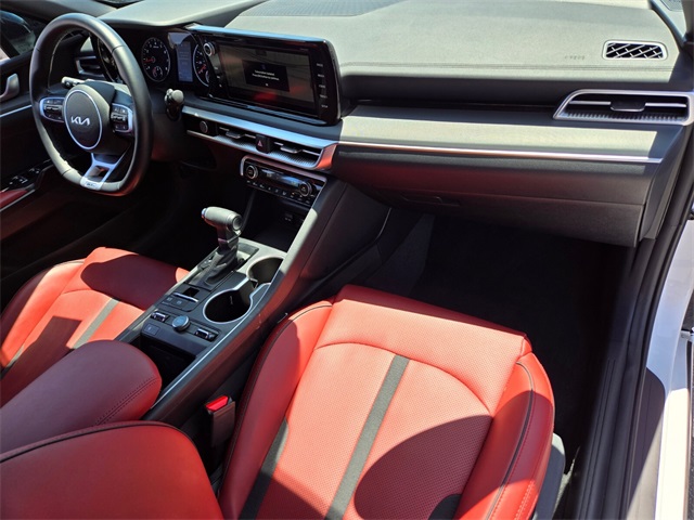 Priced below KBB Fair Purchase Price!Odometer is 2722 miles below market average!Glacial White Pearl 2024 Kia K5 GT-Line FWD 8-Speed Automatic 1.6L I4 DGI Turbocharged DOHC 16V LEV3-ULEV70 180hpIf you don't drive here, you can't save here!Price may not include recon fee. 4-Wheel Disc Brakes, 6 Speakers, ABS brakes, Air Conditioning, Alloy wheels, AM/FM radio: SiriusXM, Apple CarPlay & Android Auto, Auto High-beam Headlights, Automatic temperature control, Brake assist, Bumpers: body-color, Cloth/SynTex Seat Trim, Delay-off headlights, Driver door bin, Driver vanity mirror, Dual front impact airbags, Dual front side impact airbags, Electronic Stability Control, Four wheel independent suspension, Front anti-roll bar, Front Bucket Seats, Front Center Armrest, Front dual zone A/C, Front fog lights, Front reading lights, Fully automatic headlights, Heated door mirrors, Heated Front Bucket Seats, Heated front seats, Illuminated entry, Knee airbag, Leather steering wheel, Low tire pressure warning, Navigation System, Occupant sensing airbag, Outside temperature display, Overhead airbag, Overhead console, Panic alarm, Passenger door bin, Passenger vanity mirror, Power door mirrors, Power driver seat, Power steering, Power windows, Radio data system, Radio: AM/FM/MP3 Audio System, Rear anti-roll bar, Rear seat center armrest, Rear side impact airbag, Rear window defroster, Remote keyless entry, Security system, Speed control, Speed-sensing steering, Split folding rear seat, Spoiler, Sport steering wheel, Steering wheel mounted audio controls, Tachometer, Telescoping steering wheel, Tilt steering wheel, Traction control, Trip computer, Turn signal indicator mirrors, Variably intermittent wipers, and Wheels: 18" Gloss Black Machined Finish Alloy.